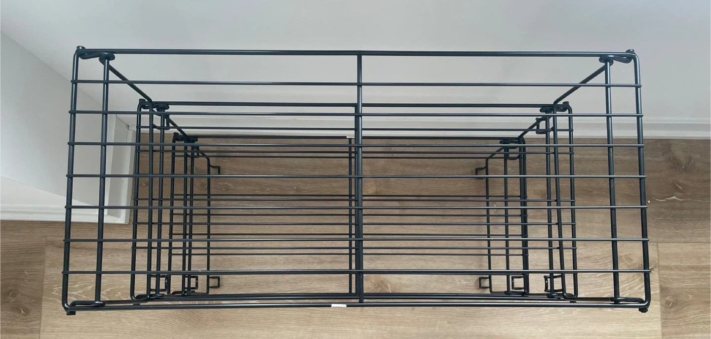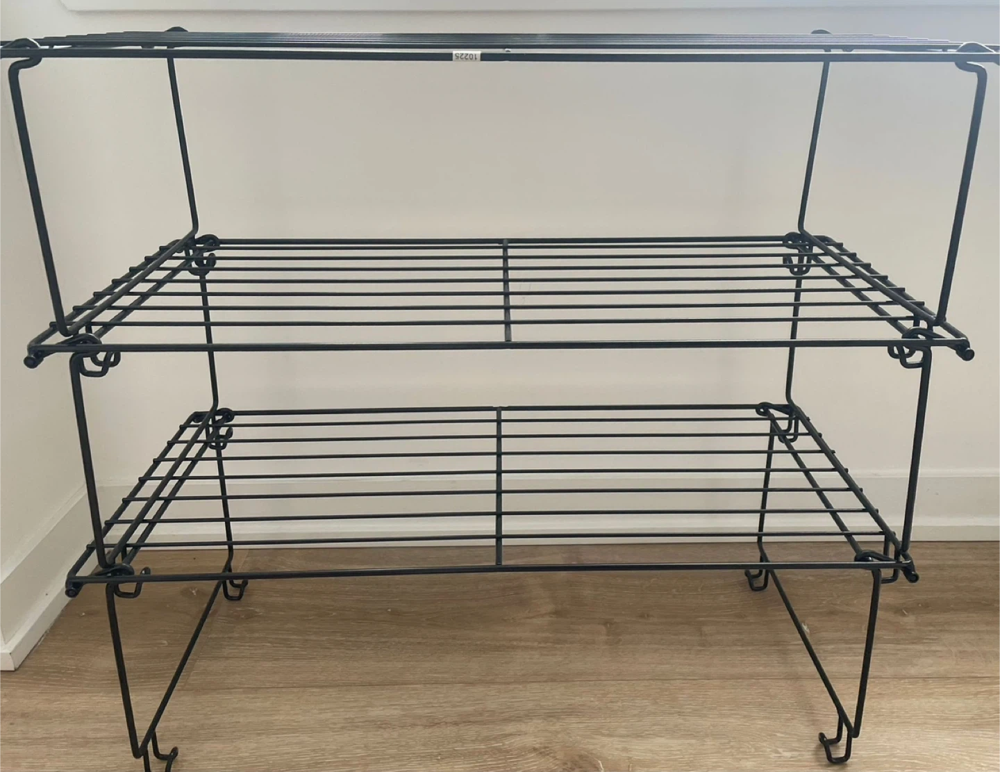 Here's a handy black metal three-tier shelf! It's great for adding some extra storage in your kitchen, bathroom, serve as a shoe rack or anywhere else you need it. It's in great shape and ready for a new home