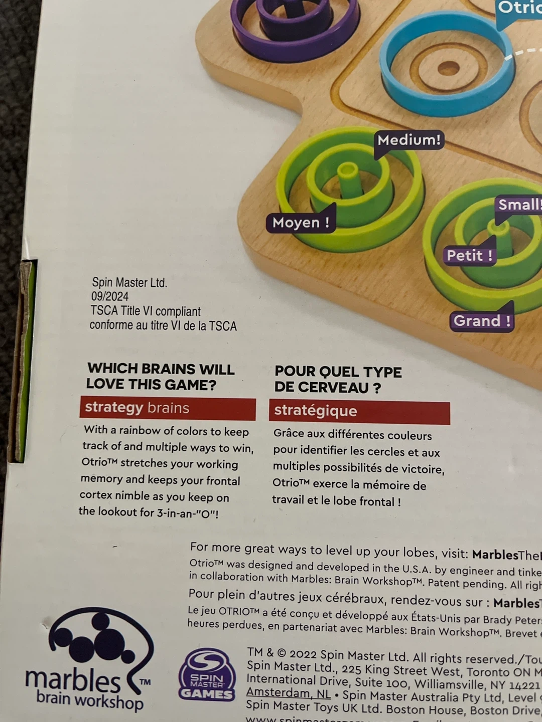 Otrio Deluxe Strategy Board Game by Marbles Brain Workshop