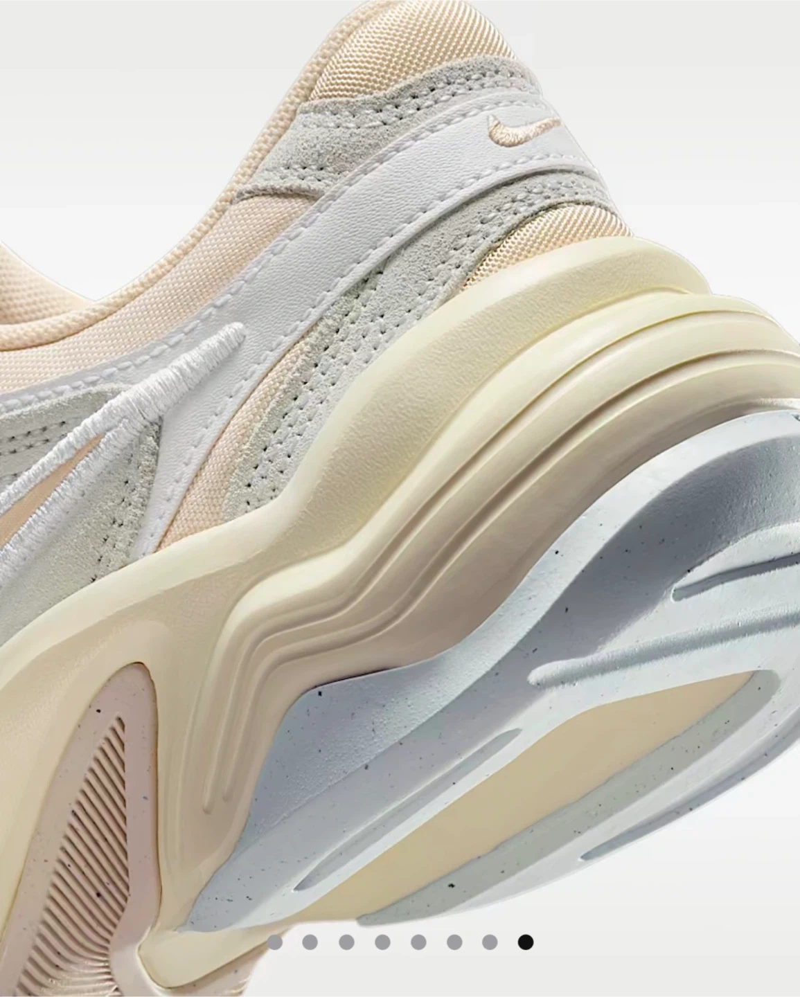 These Nike sneakers feature a breathable mesh and suede upper. They have a chunky sole design and a visible Zoom Air unit for cushioning. Great for everyday wear!