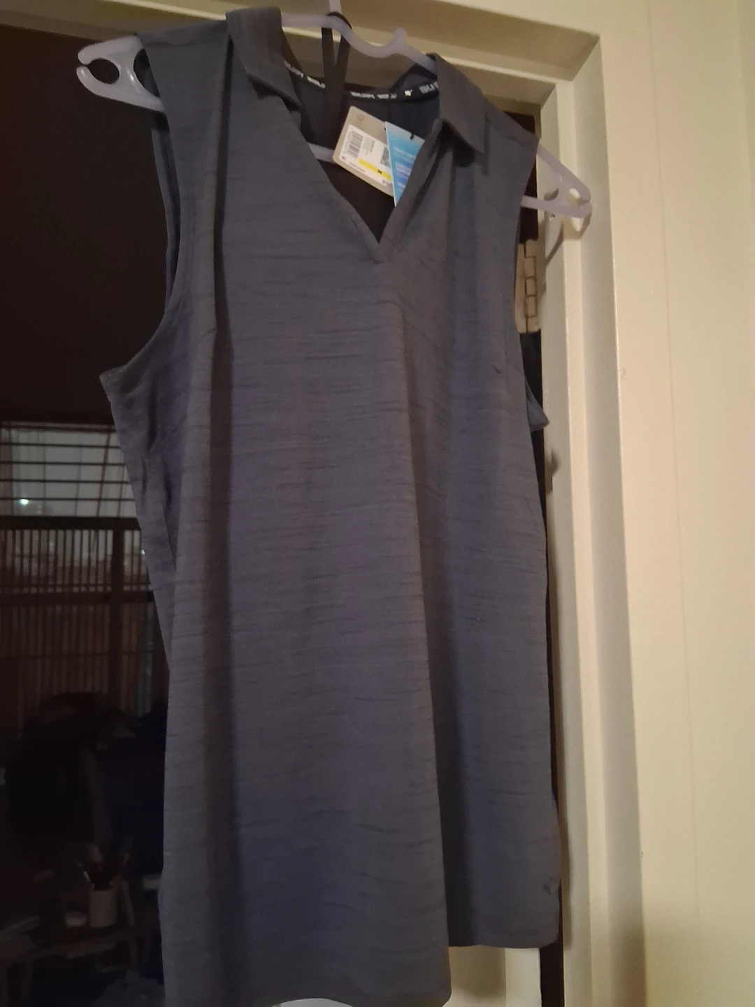 Puma women's sleeveless golf polo shirt in grey. Features "Crazy Soft" fabric that stretches for comfort and is moisture-wicking.