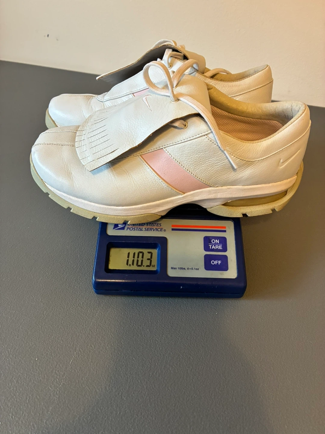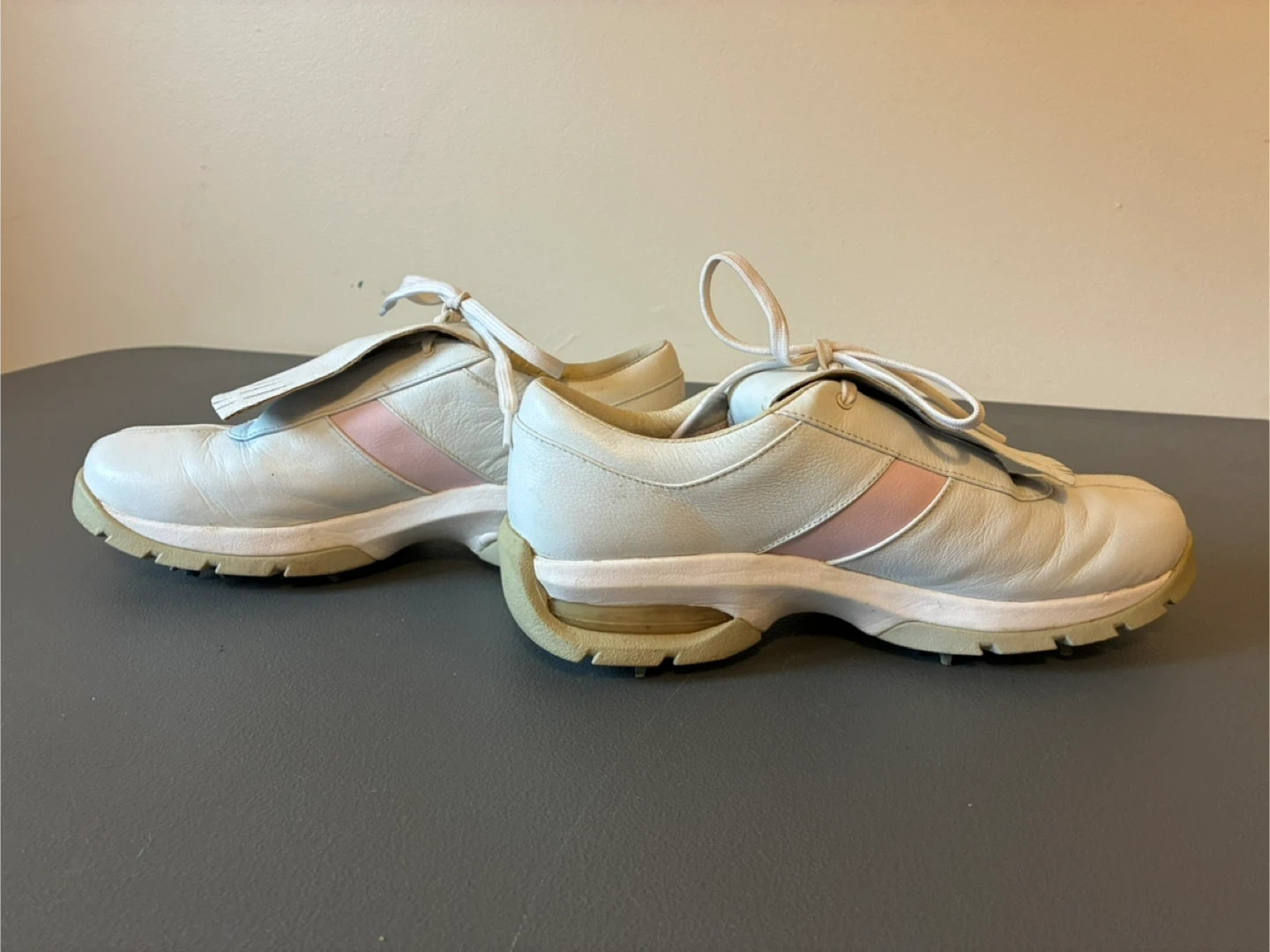 Nike White Leather Golf Shoes with Pink Accents