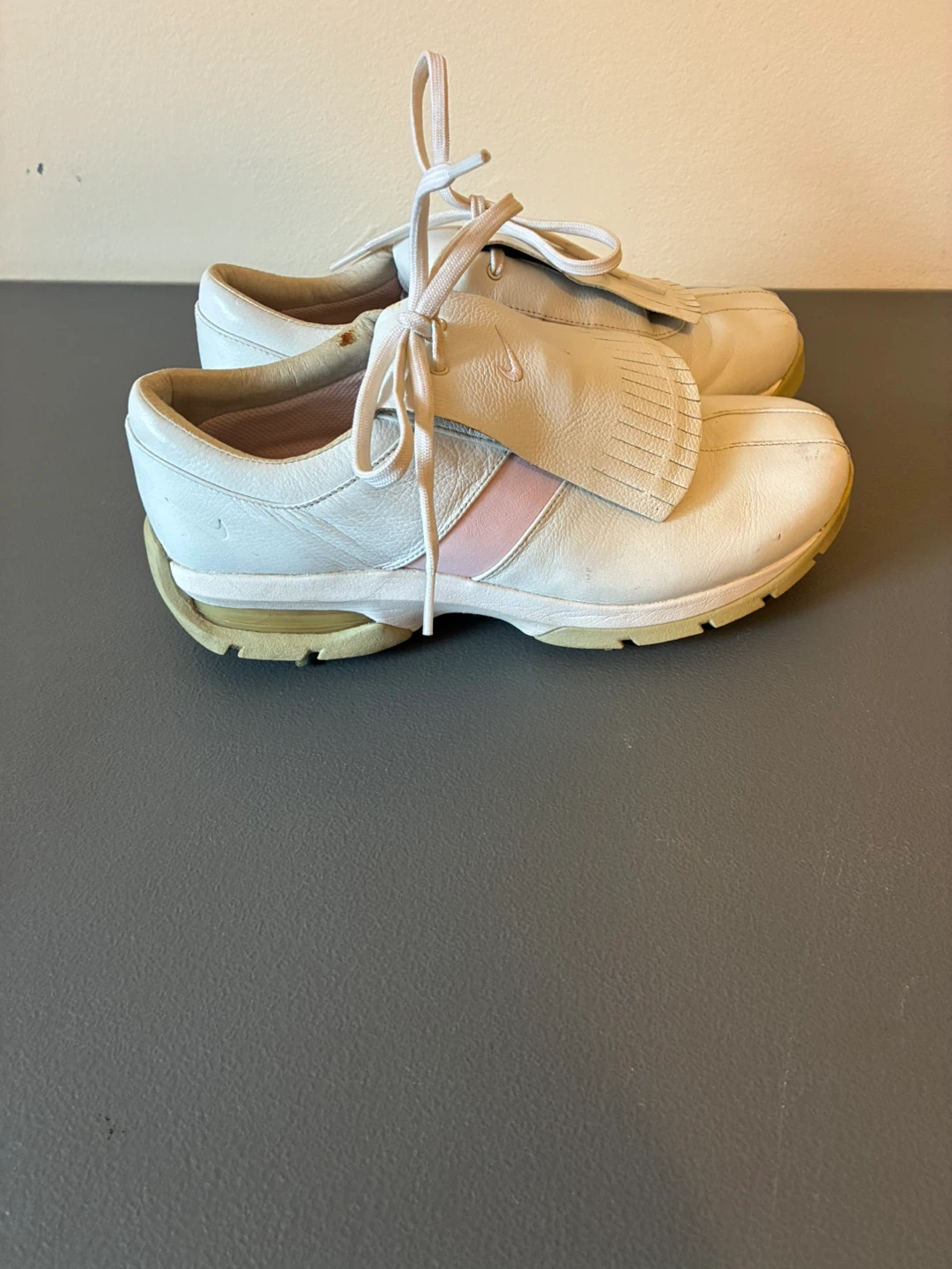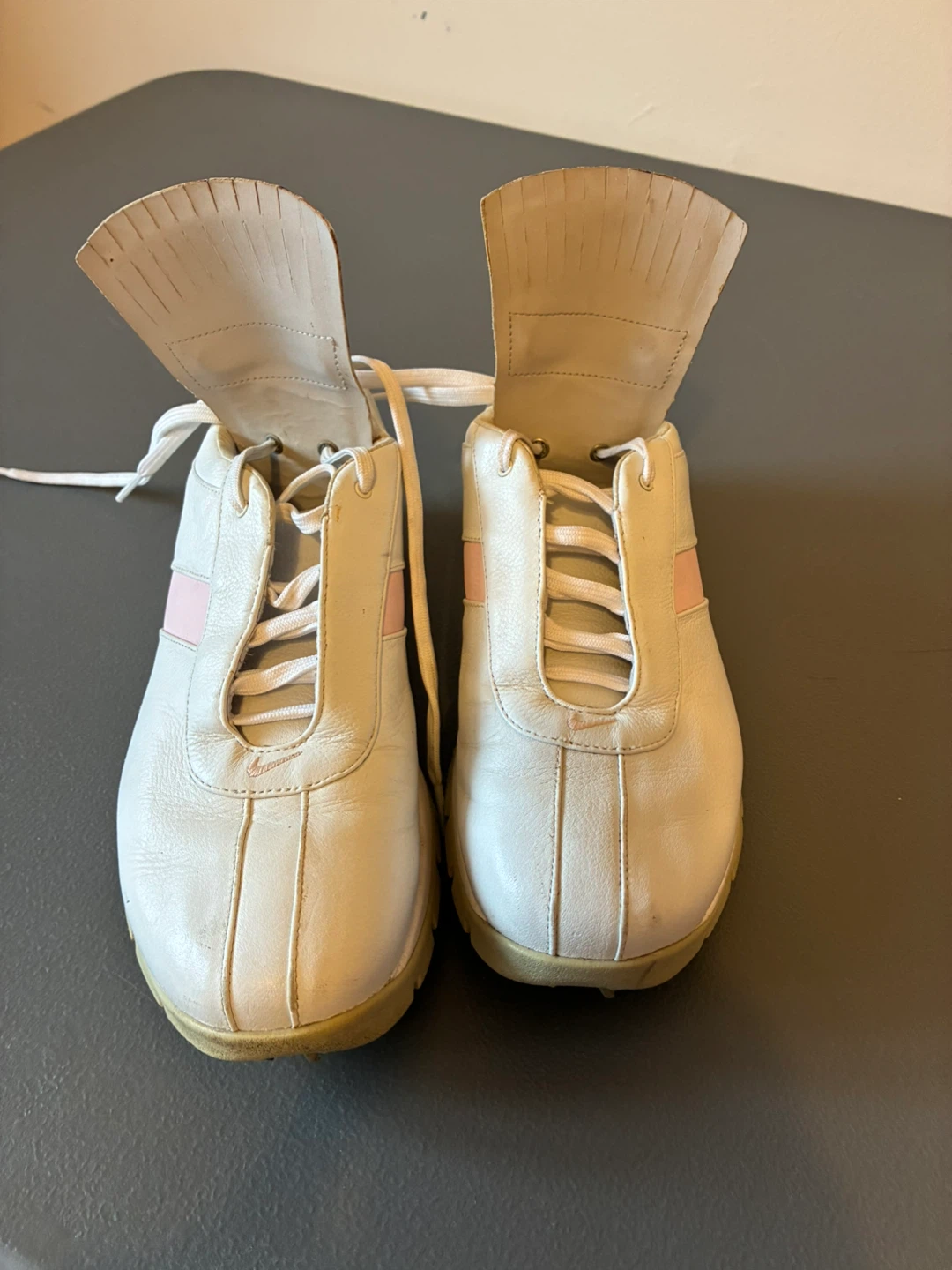 Nike White Leather Golf Shoes with Pink Accents
