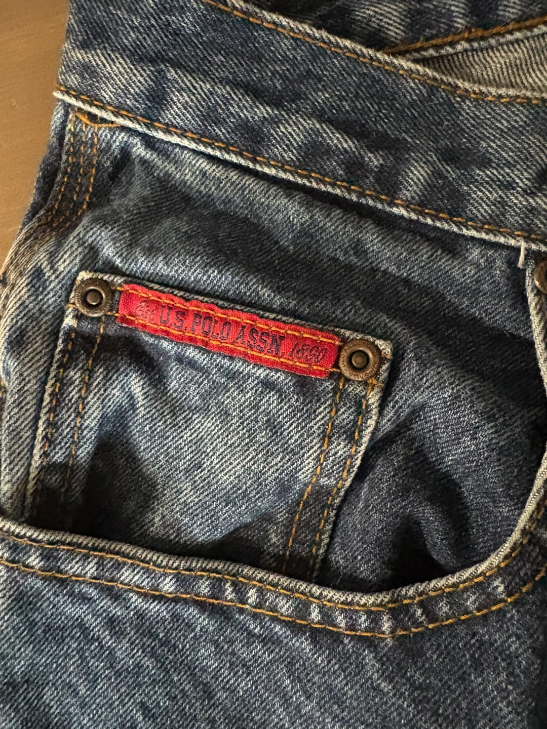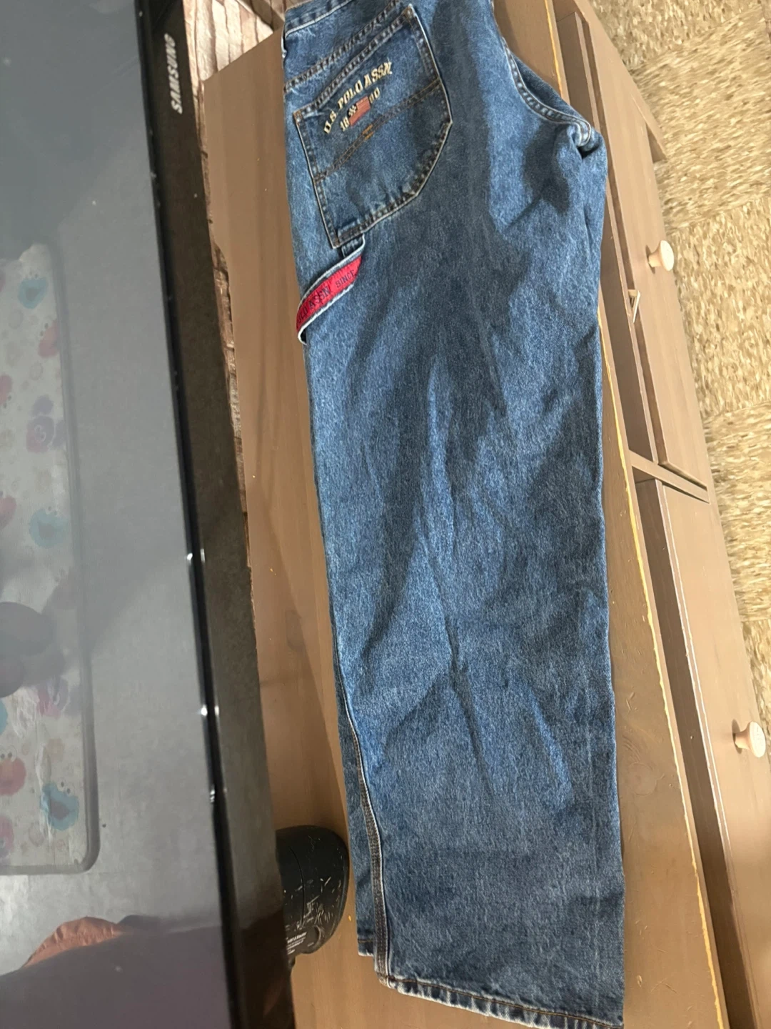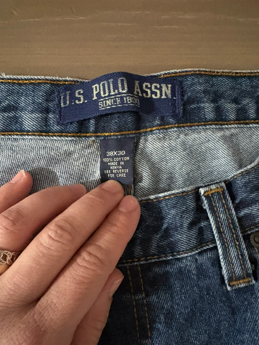 These U.S. Polo Assn. jeans are made of 100% cotton. They're a size 38x30 with a classic blue denim look. They're perfect for everyday wear!