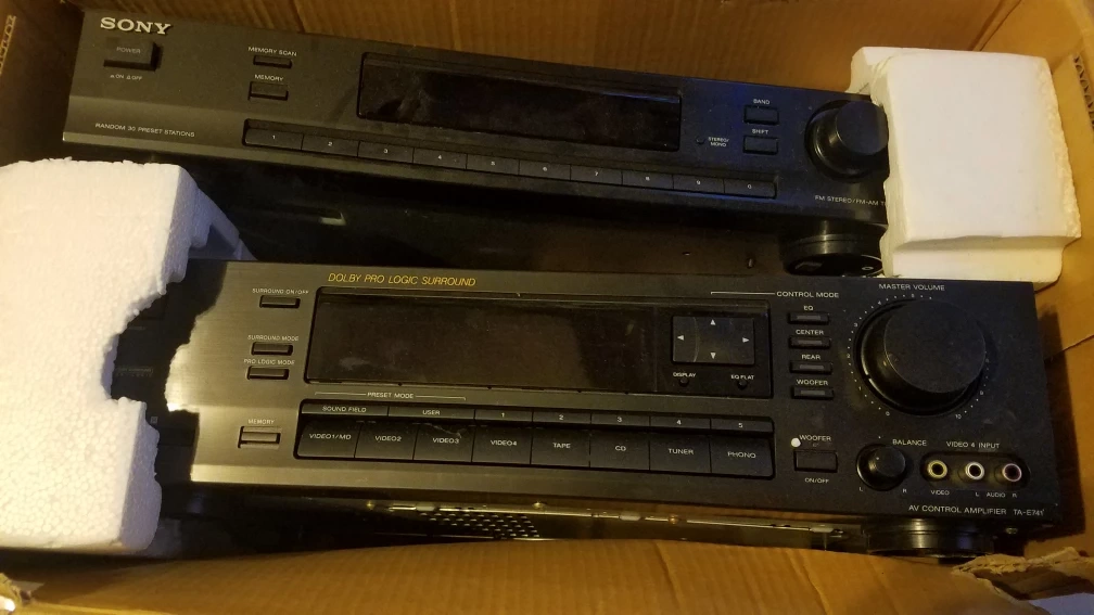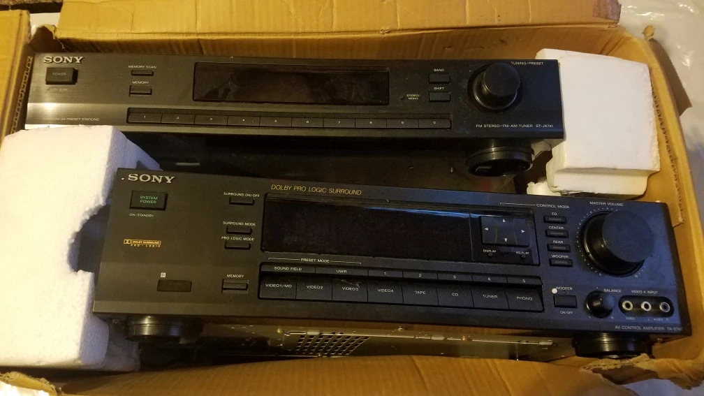 Sony STU-741 FM Stereo/AM Tuner Amplifier System. Consists of TA-E741 AV Control Amplifier and ST-JX741 FM Stereo/FM-AM Tuner. Made in Japan.