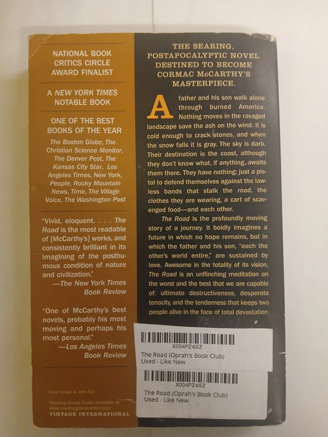 The Road is a post-apocalyptic novel by Cormac McCarthy. It follows a father and son's journey through burned America. This Pulitzer Prize winner is a tale of survival and the miracle of goodness.