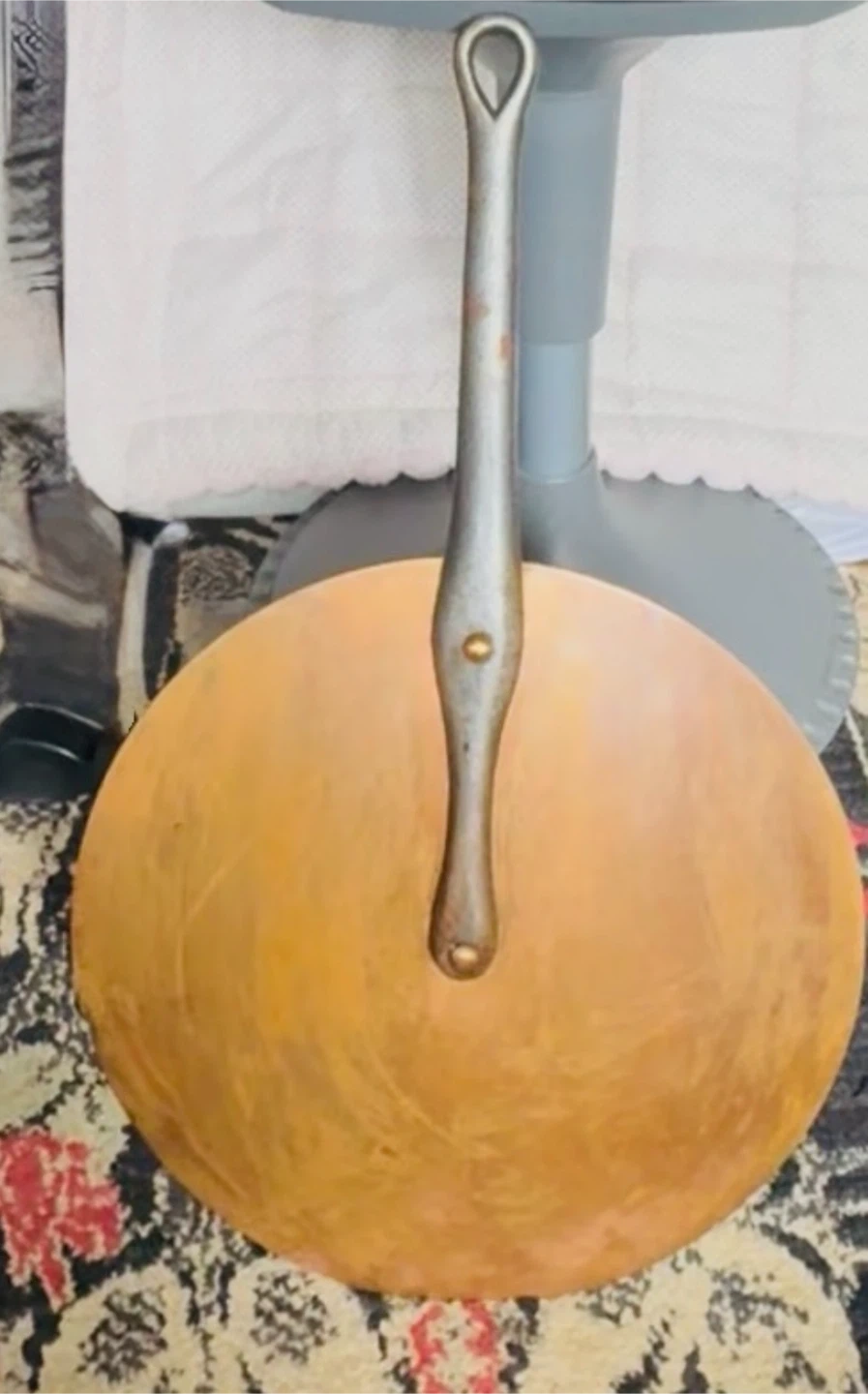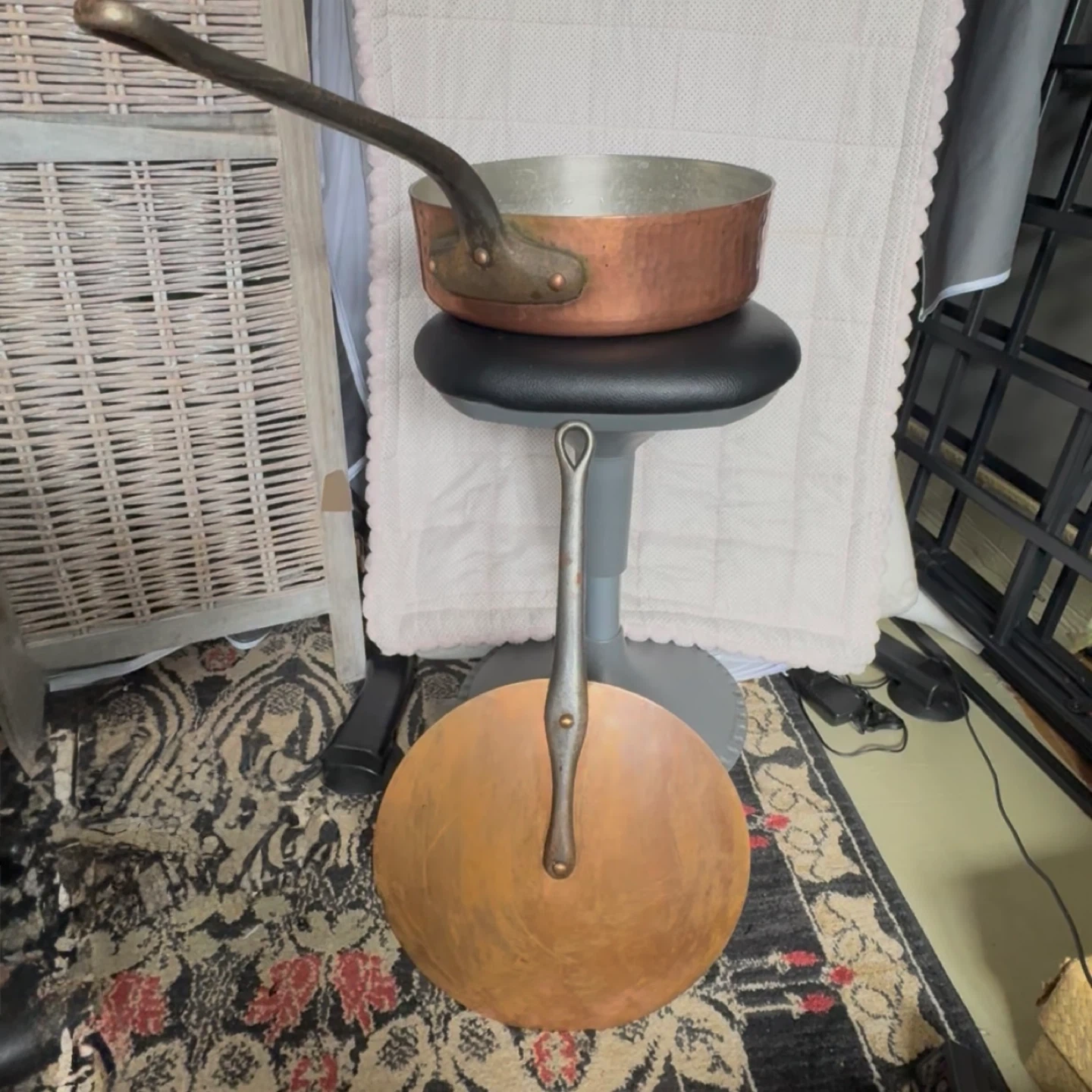 Selling a Mauvielle tin-lined copper saute pan with lid. 12 inches wide and 3 inches deep. 13 inch cast iron handle. It shows some signs of use and wear, but still has lots of life left! Great for cooking or display. Can probably be cleaned up a lot better. Very slight bubbling on the tin. Not used much. Extremely heavy. Was purchased at Zabars around 1997. Cost originally about $350. Pick up only in southeast corner of Stuytown.