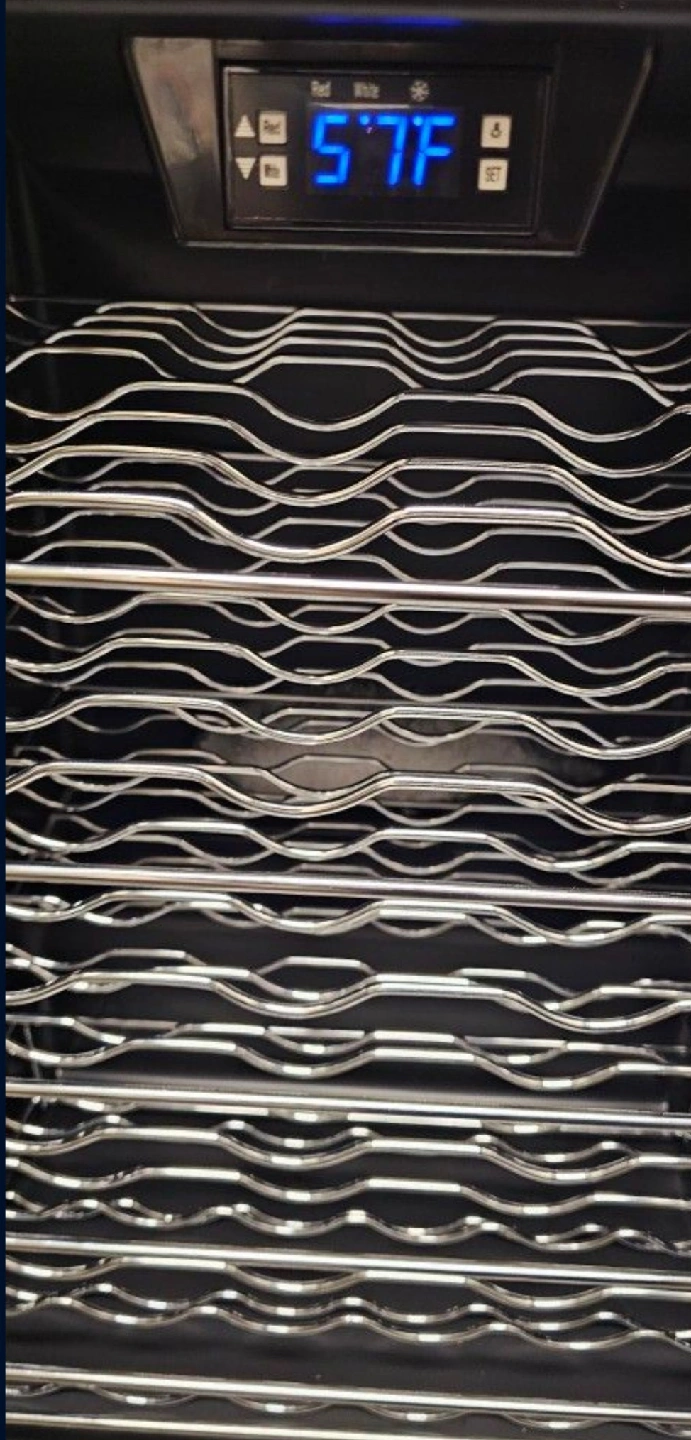 Selling a Magic Chef MCWC58DBST wine cooler. It has a digital temperature control and can be set for red or white wines. It has a stainless steel finish.