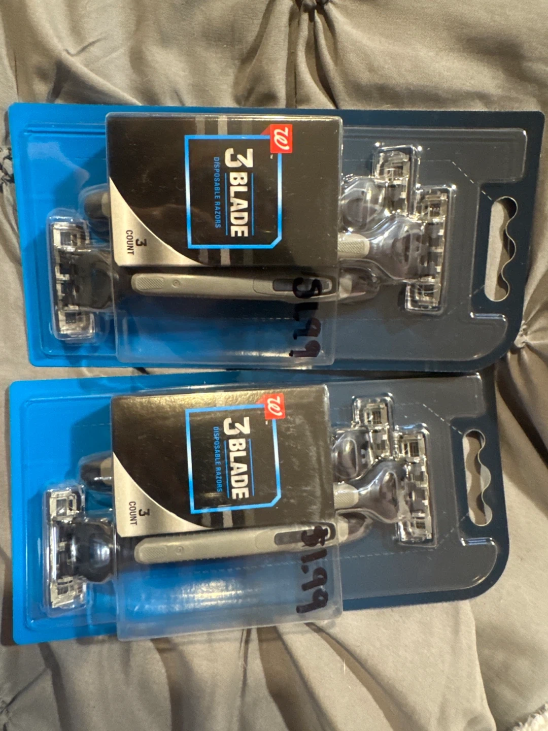 I have two packs of Walgreens 3 Blade Disposable Razors for sale. Each pack contains 3 razors. They are brand new! I have 20 piece left