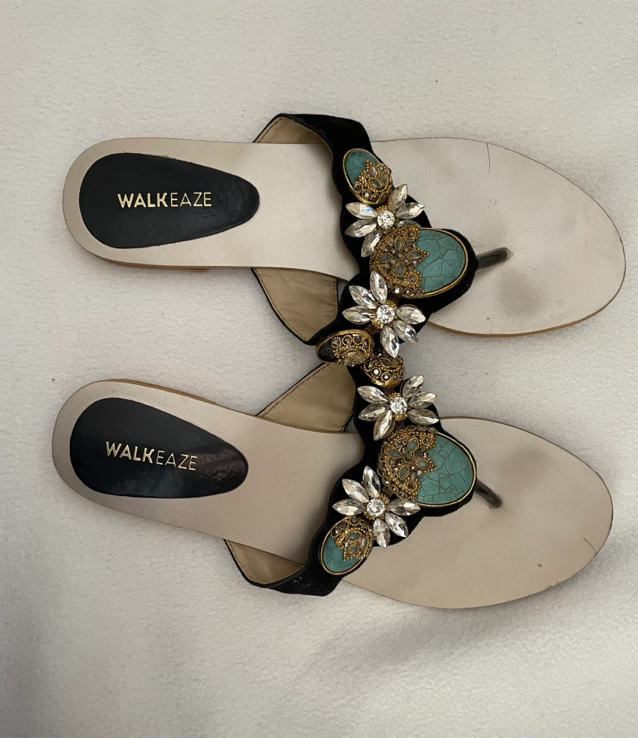 15These Walkeaze sandals are super cute and feature a black strap adorned with turquoise and crystal embellishments. They're perfect for adding a touch of sparkle to your summer outfits!