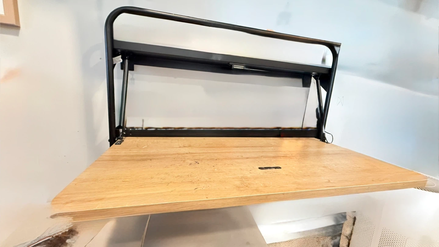 11This is a wall-mounted fold-down desk that's perfect for saving space! It's great for small apartments, home offices, or kids' rooms. The desk folds up easily when not in use, and it provides a sturdy work surface when you need it