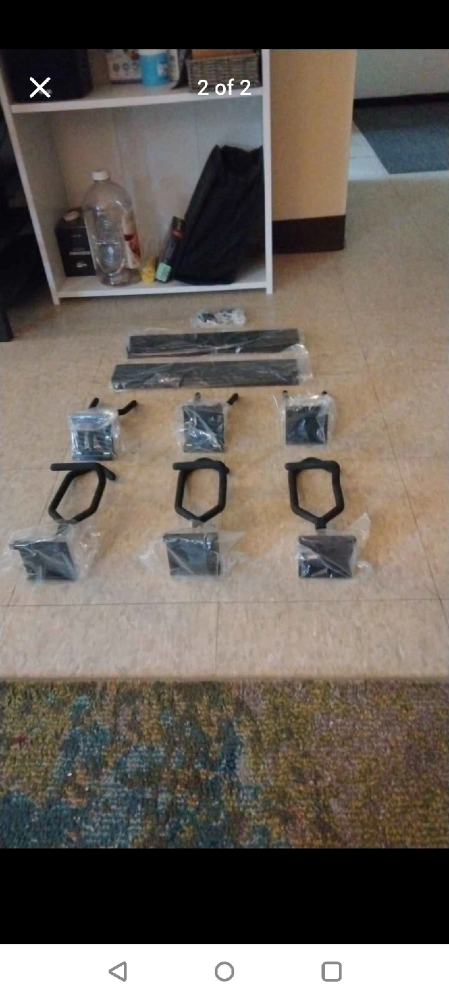 Three weapon rifle rack, wall mountable accommodates three comfortablely, padded steel with mounting screws...cash only