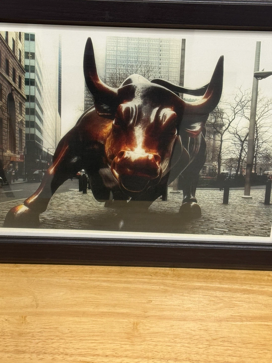 Selling a picture frame of the Wall Street Bull, located in the heart of Wall Street, this photo will bring life inside your home and if your sign is Taurus, then Olay.