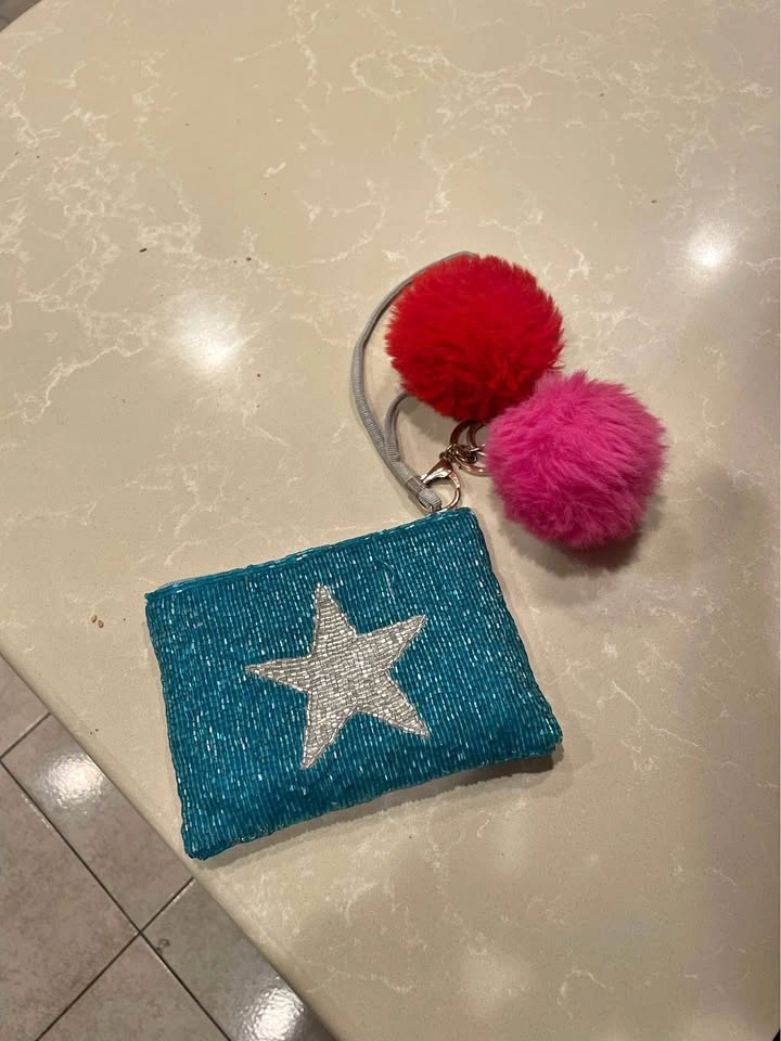 Fabric wallet with poms. Perfect for kids