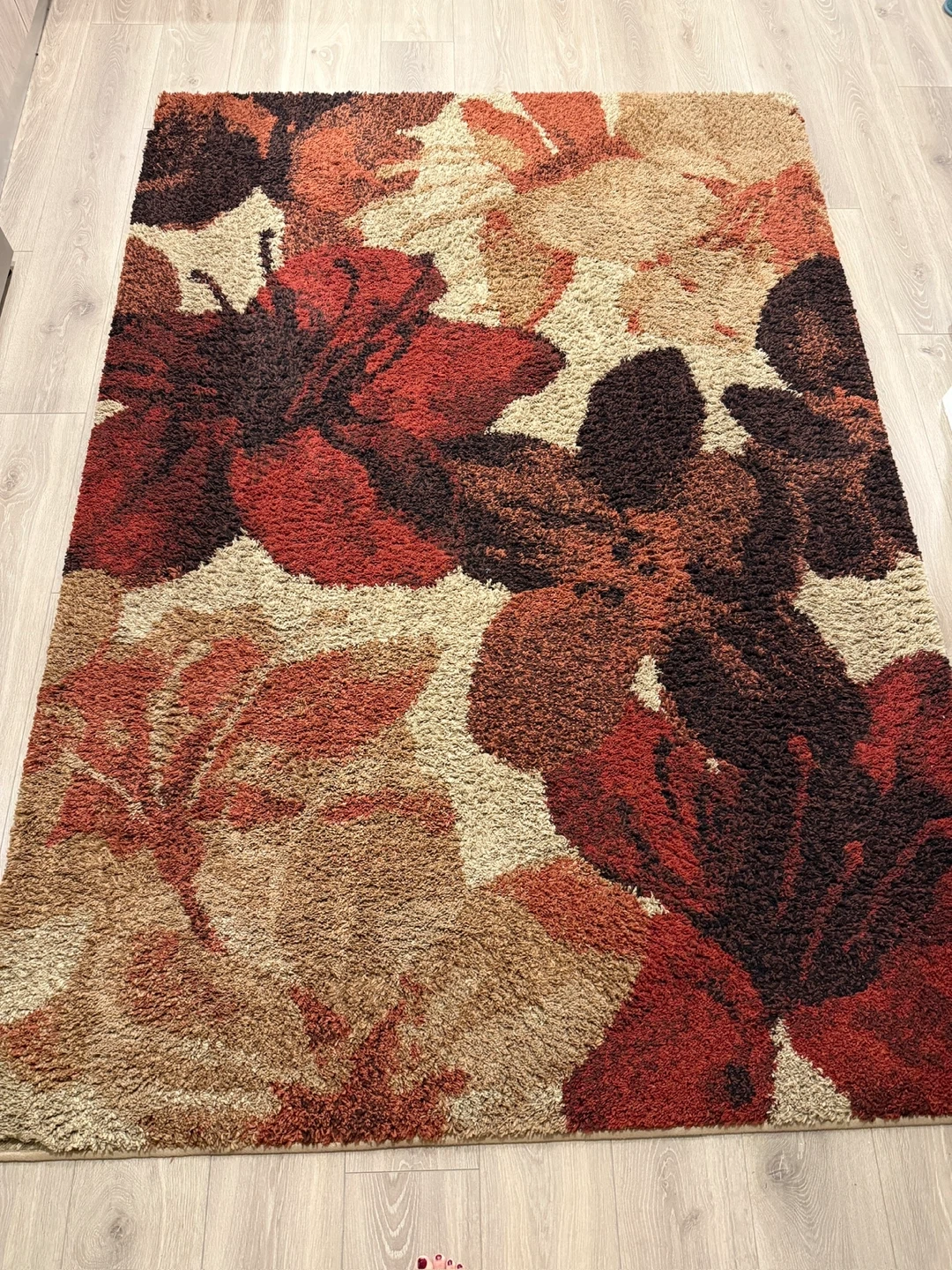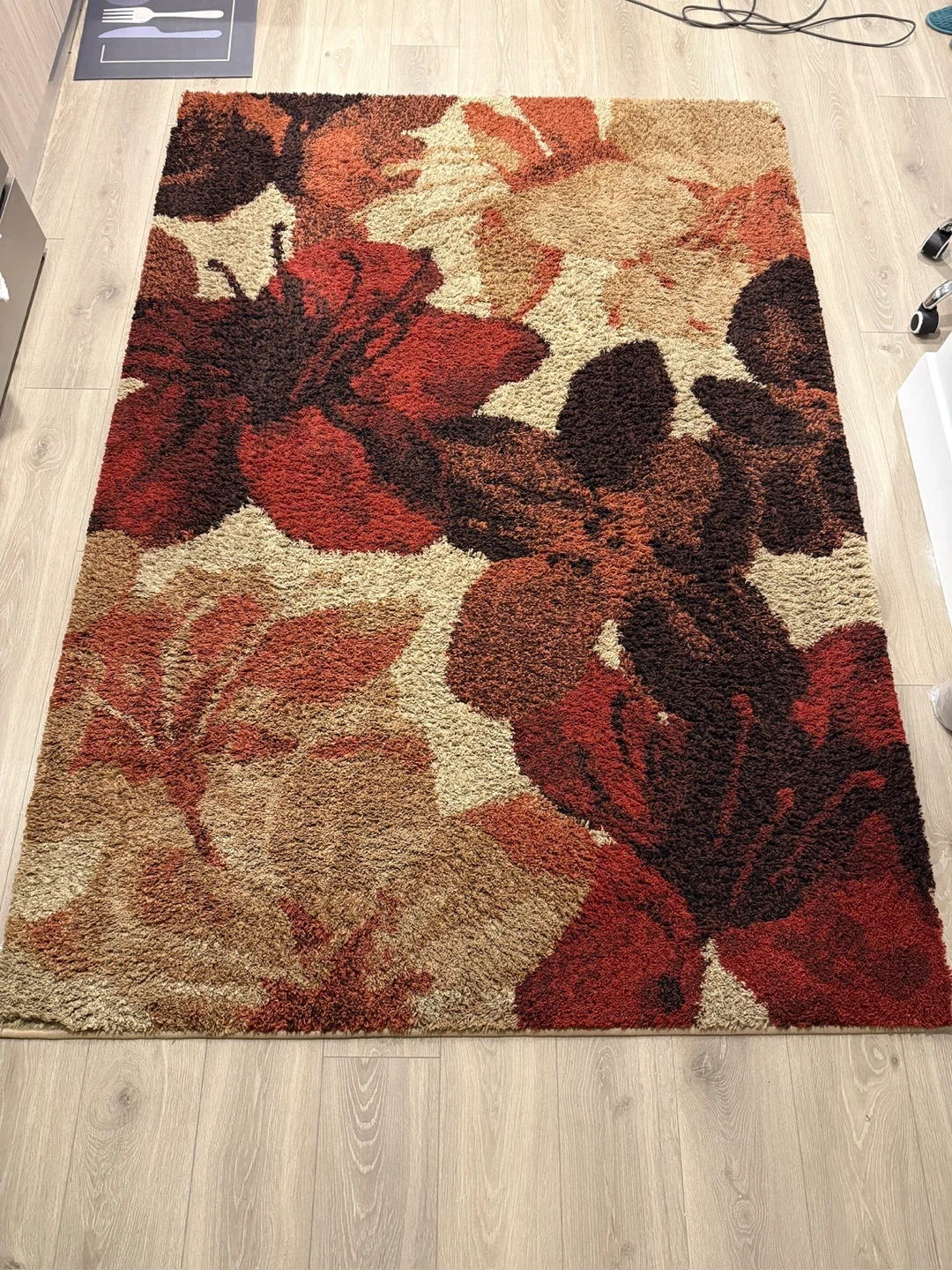 10Selling a floral area rug with a blend of red, brown, and beige tones! It features a vibrant floral pattern that adds a touch of warmth to any room. The rug is in good condition and ready to enhance your living space!