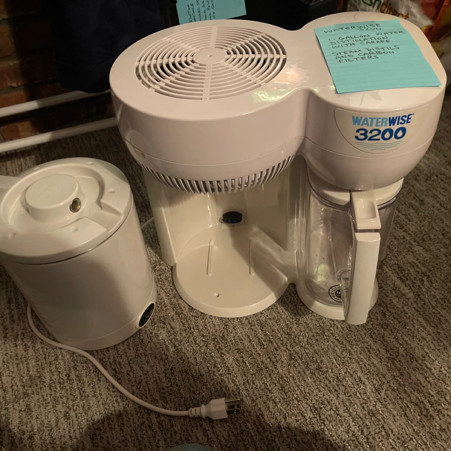 Selling a Waterwise 3200 water distiller. It's in great condition and ready to use! It distills one gallon of water and comes with a separate carafe for easy pouring. Perfect for clean and pure drinking water!