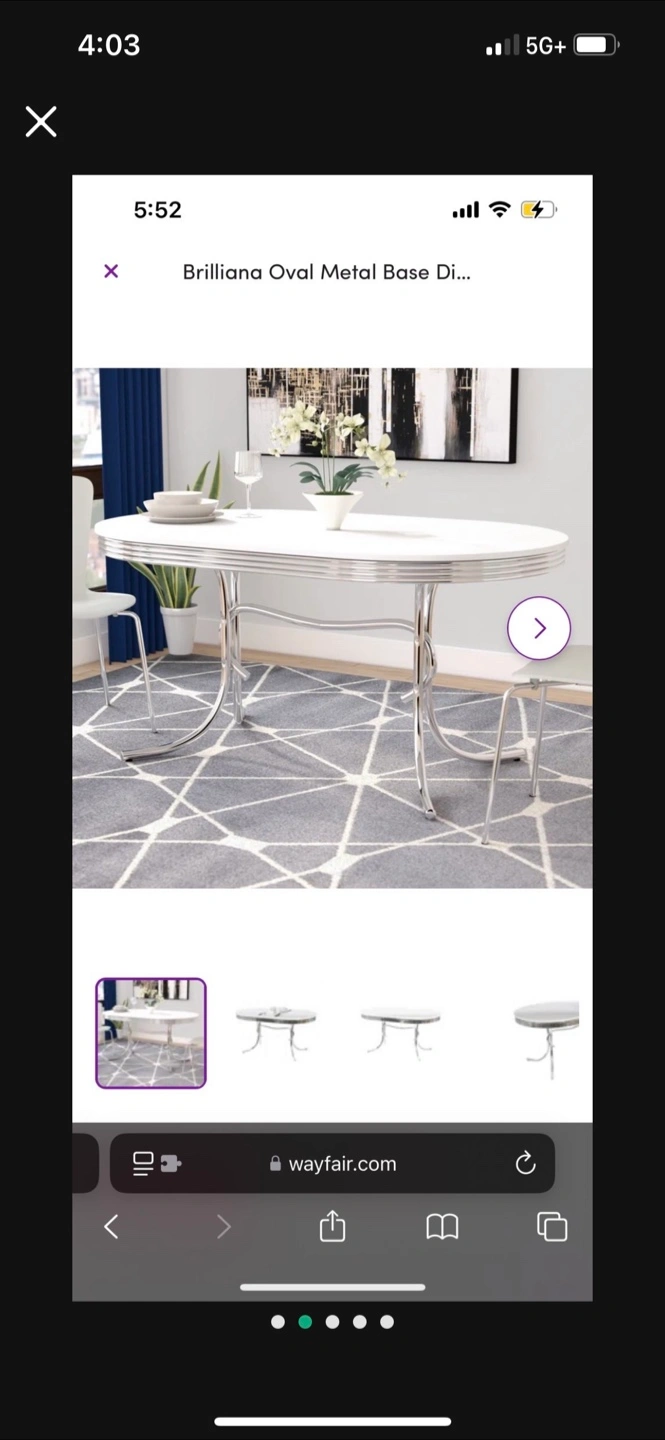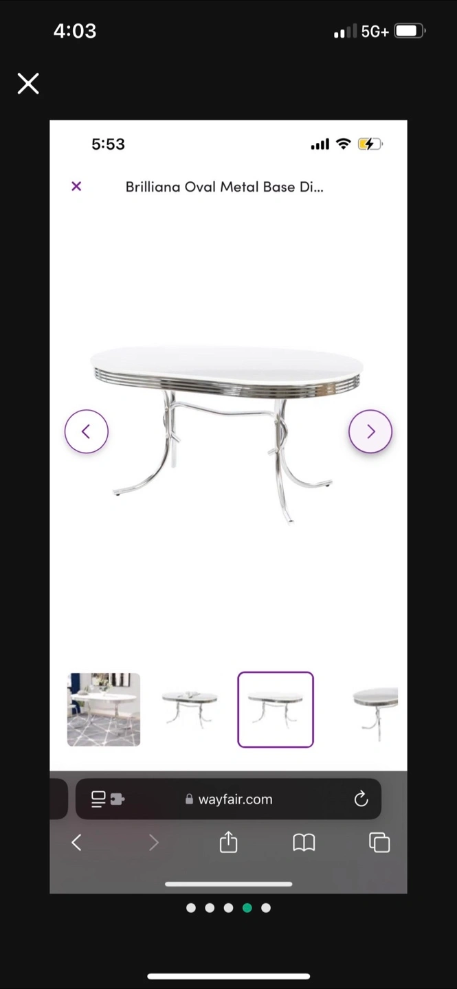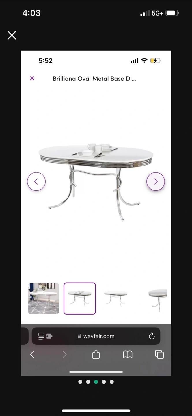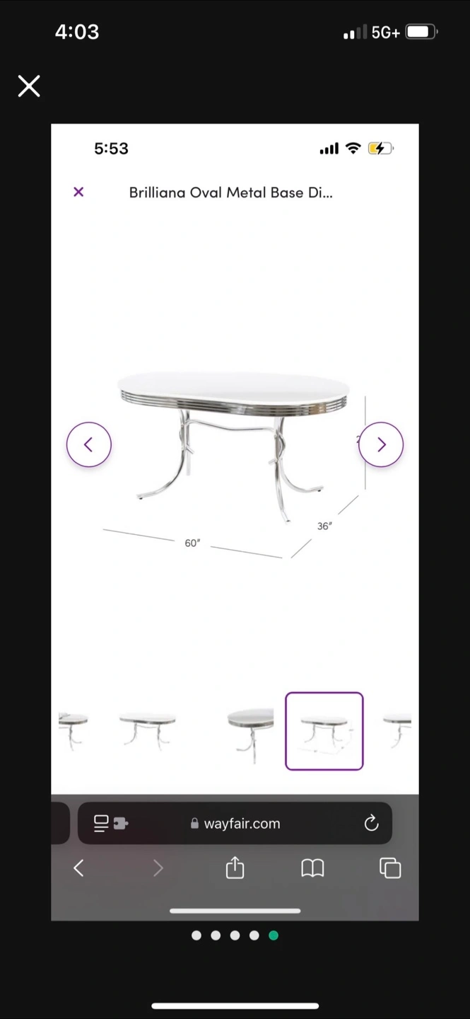 Wayfair Brilliana Oval Metal Base Dining Table - 60"