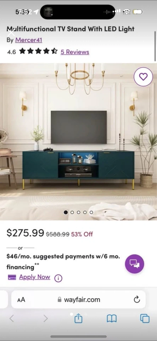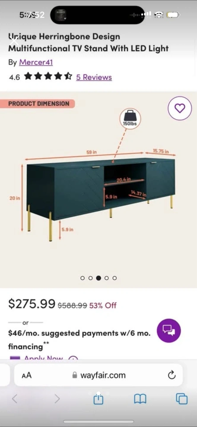 Show allWayfair Unique Herringbone Design TV Stand LED Light