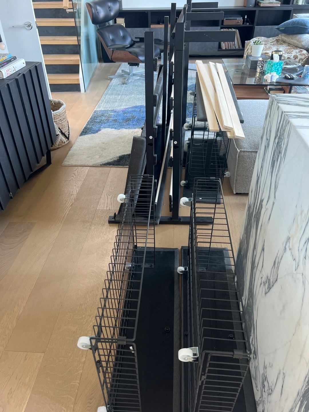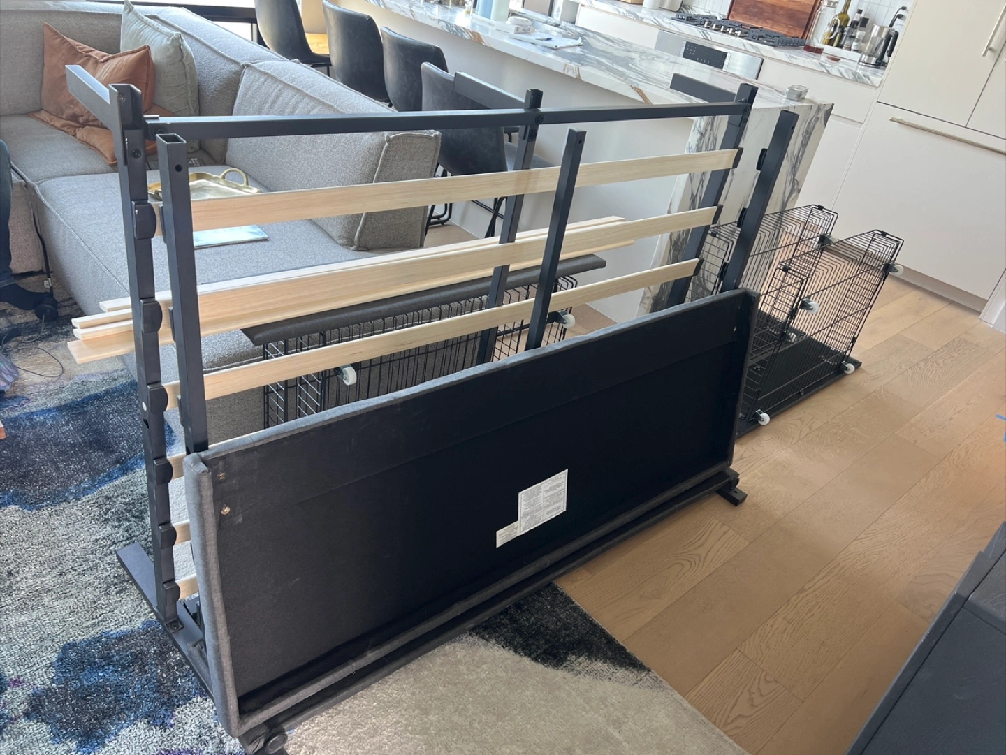 Black metal frame. Includes storage drawers. Some assembly required. Excellent condition. Does not include mattress. https://www.wayfair.com/furniture/pdp/red-barrel-studio-upholstered-storage-bed-w010253551.html?piid=393140774%2C384487601