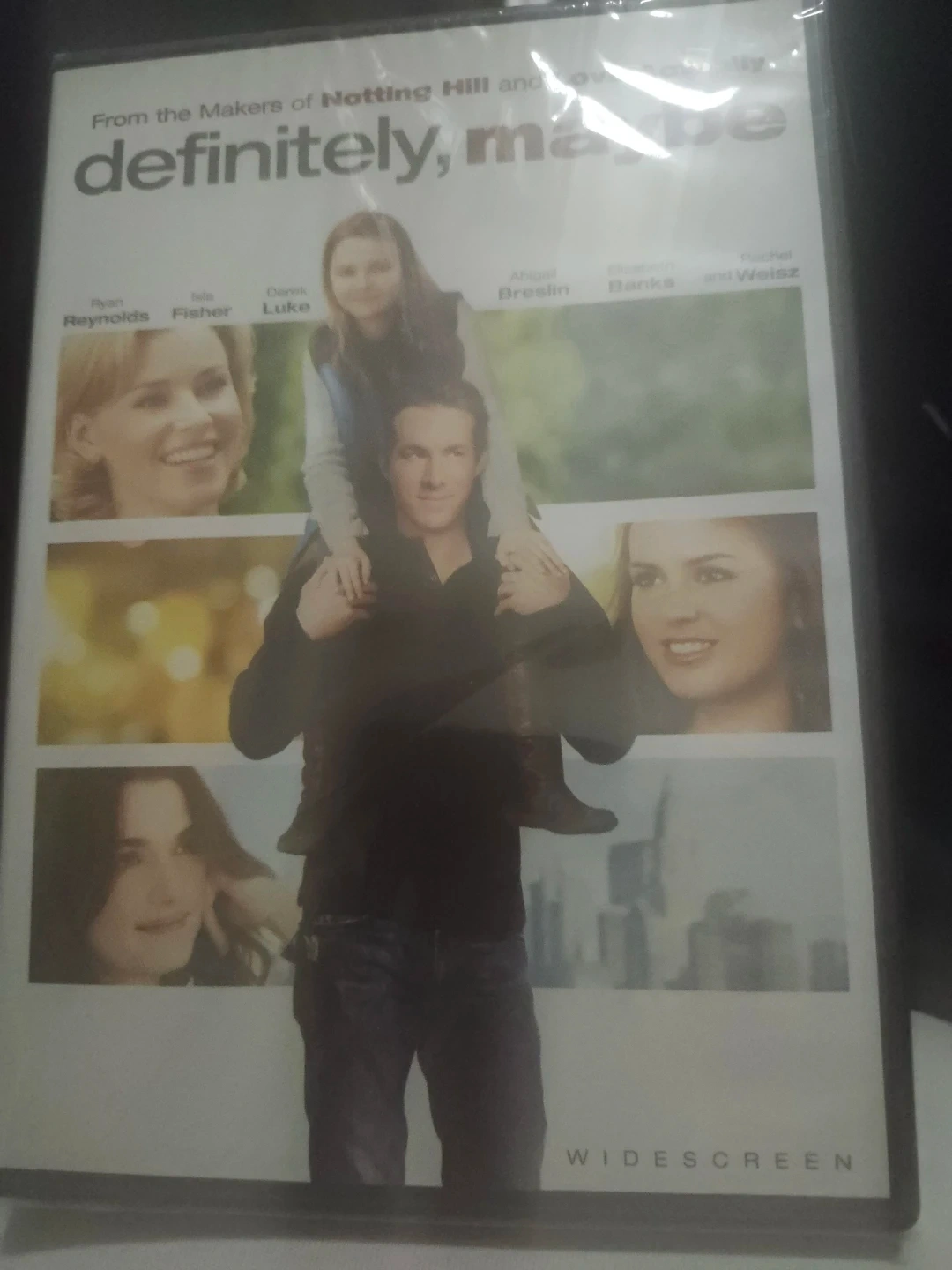 This is the DVD for the movie Definitely, Maybe. It's presented in widescreen format. It stars Ryan Reynolds, Isla Fisher, Derek Luke, Abigail Breslin, Elizabeth Banks, and Rachel Weisz.