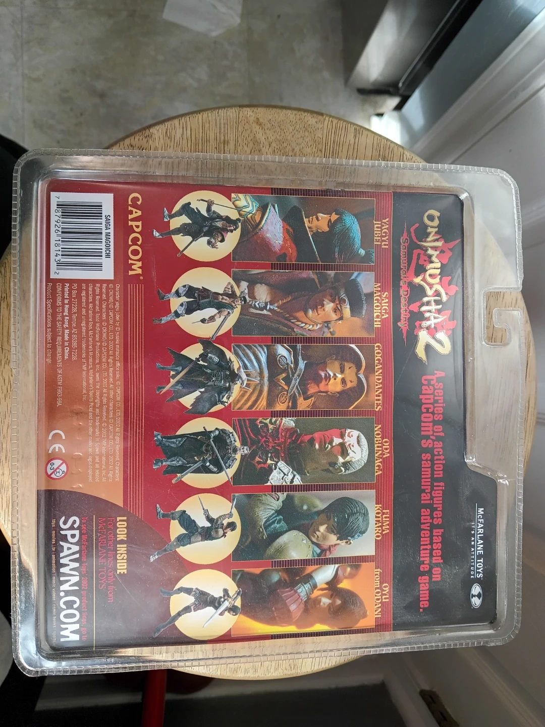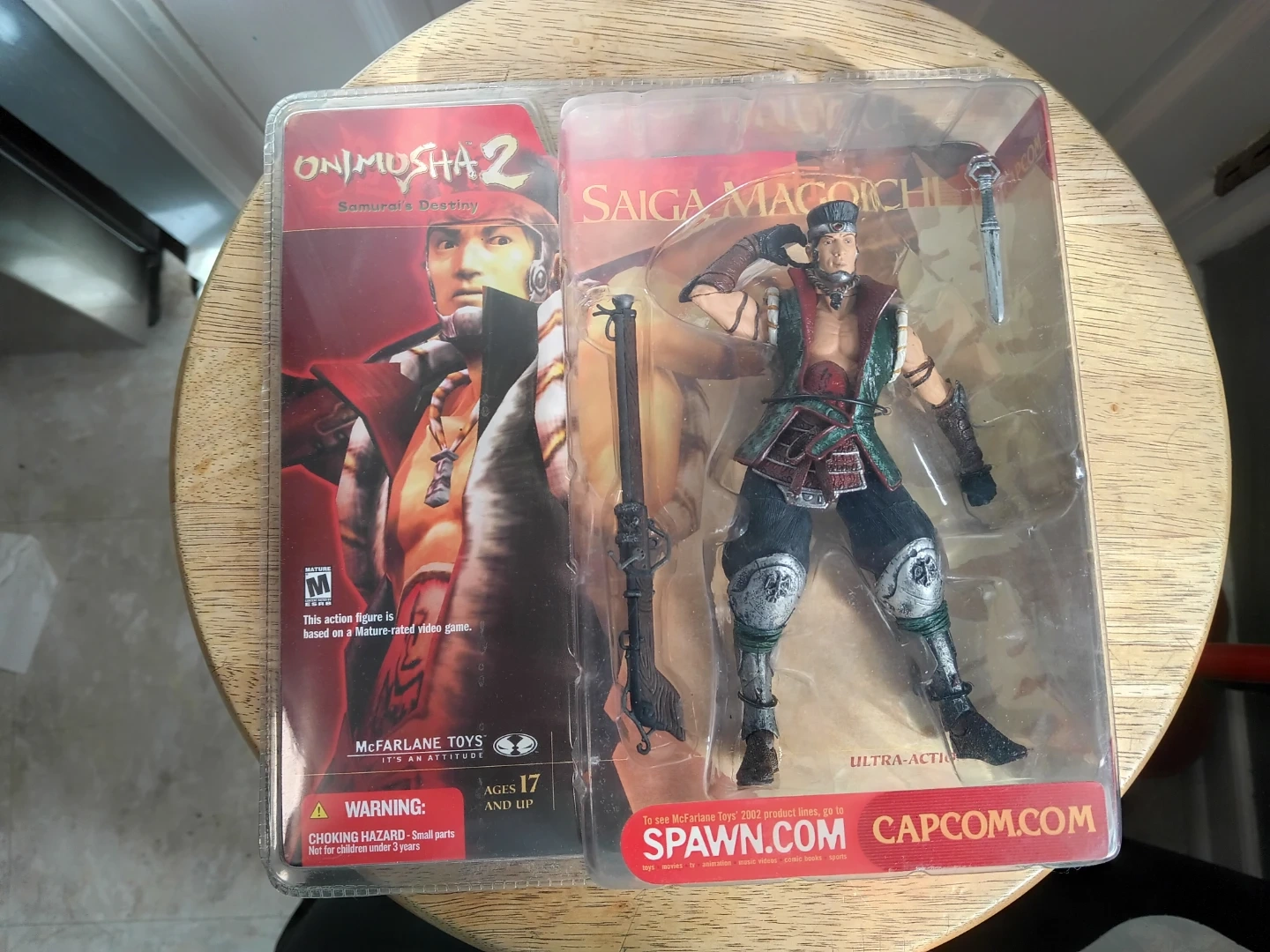 This is the McFarlane Toys Onimusha 2 Saiga Magoichi action figure. It's based on the Samurai's Destiny video game. Figure comes with accessories. Packaging has some wear,dings and bends. Sold as is.