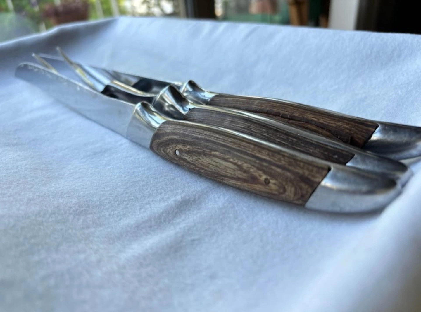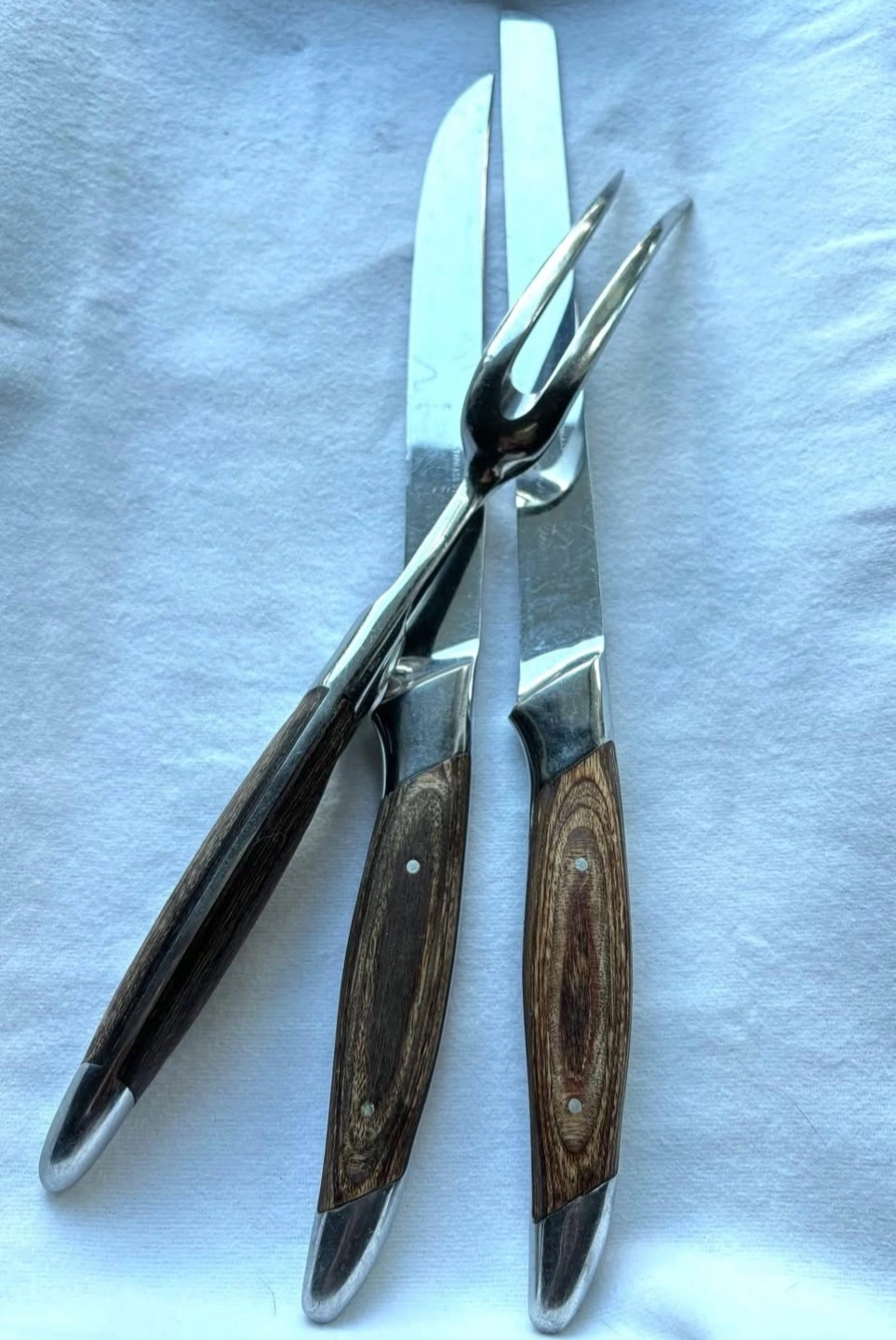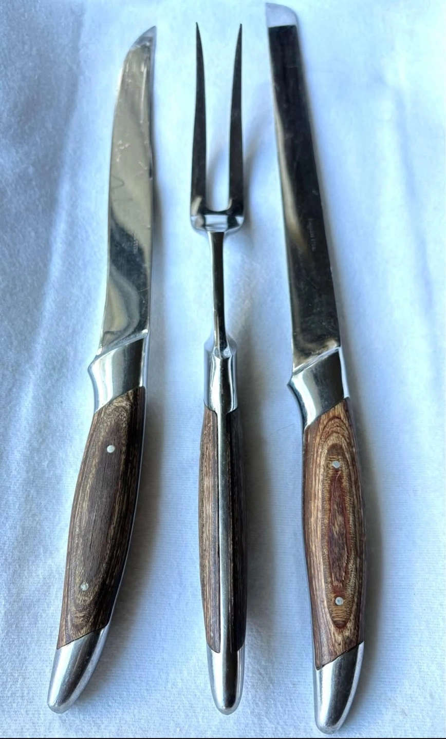 Vintage 3 Pc Japanese Pakkawood & Stainless Steel Carving Set