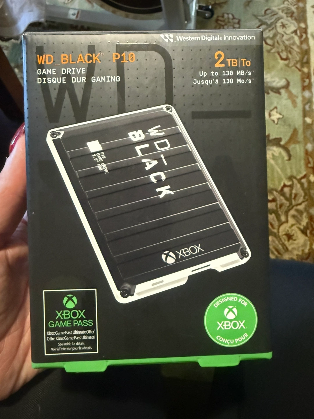 65Selling a brand new WD Black P10 Game Drive for Xbox! It has 2TB of storage and is designed for Xbox. Get up to 130 MB/s transfer speeds. Comes with the original box. New open box never used