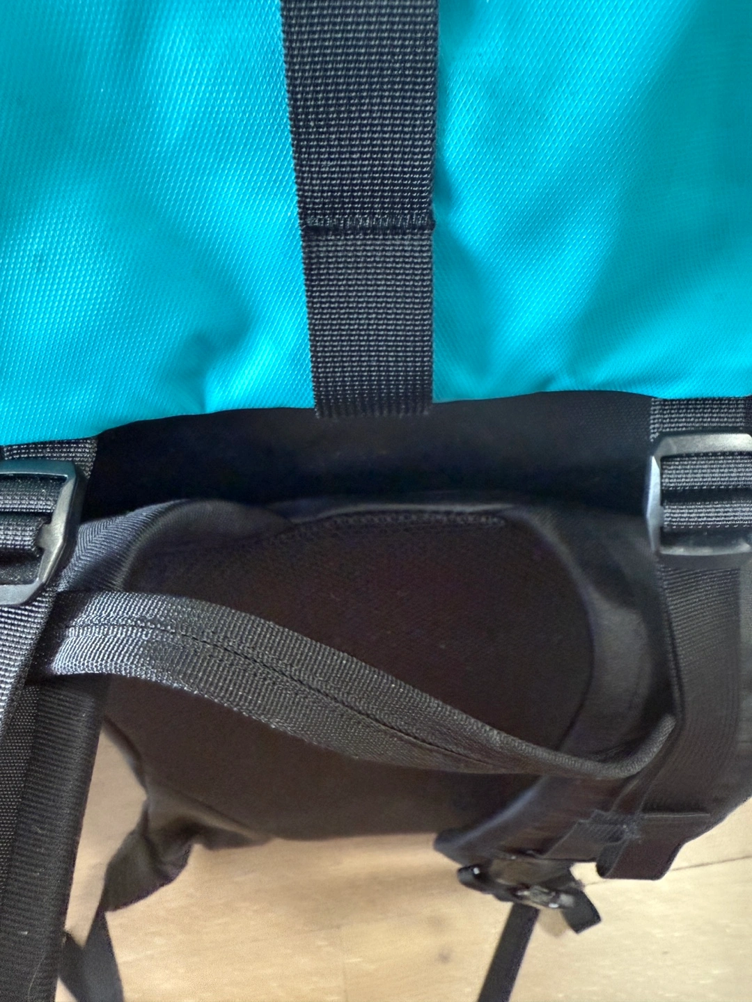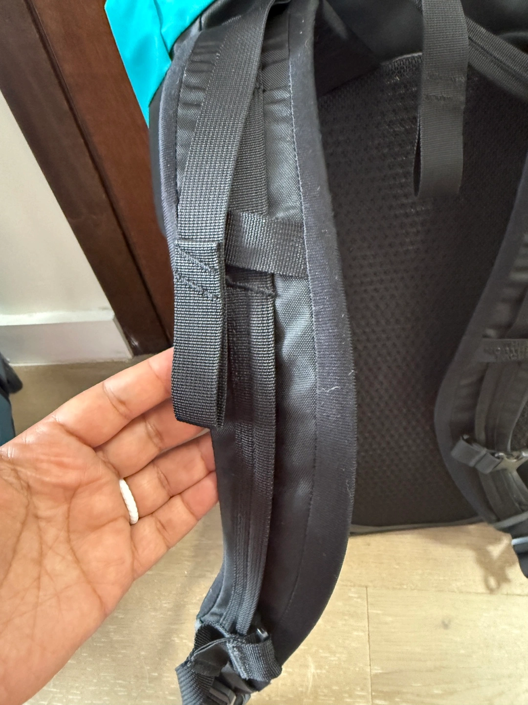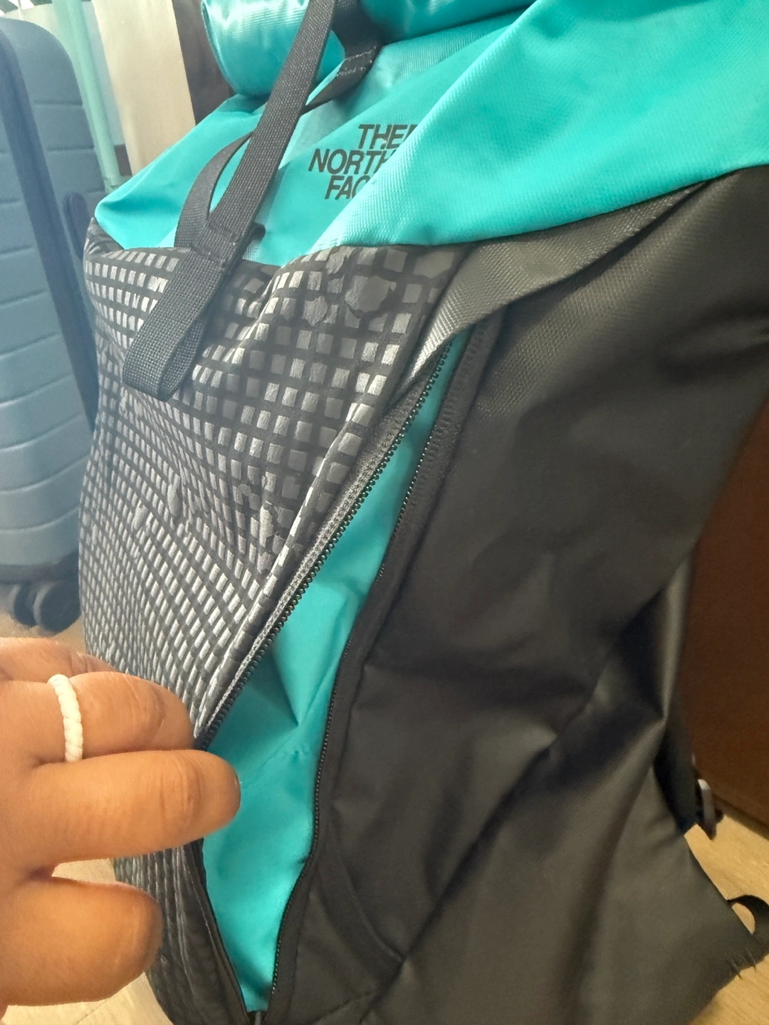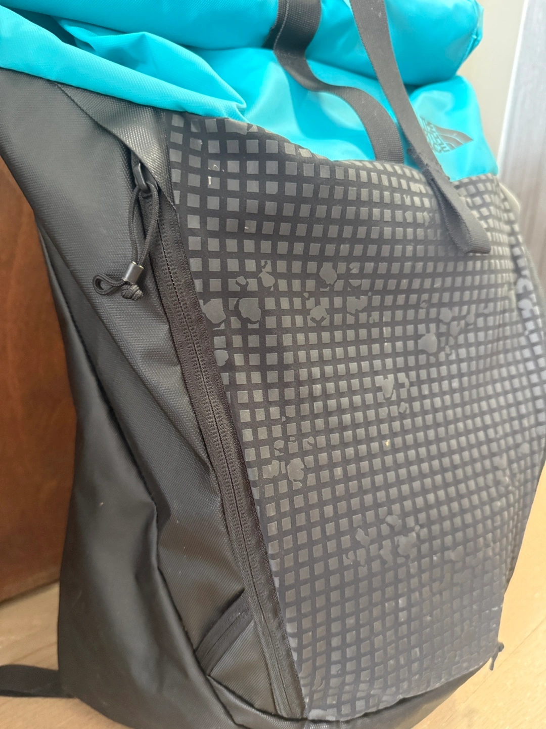 Selling a The North Face backpack in good condition. It features a roll-top closure and a stylish black and gray patterned design on the front. Perfect for everyday use or outdoor adventures!