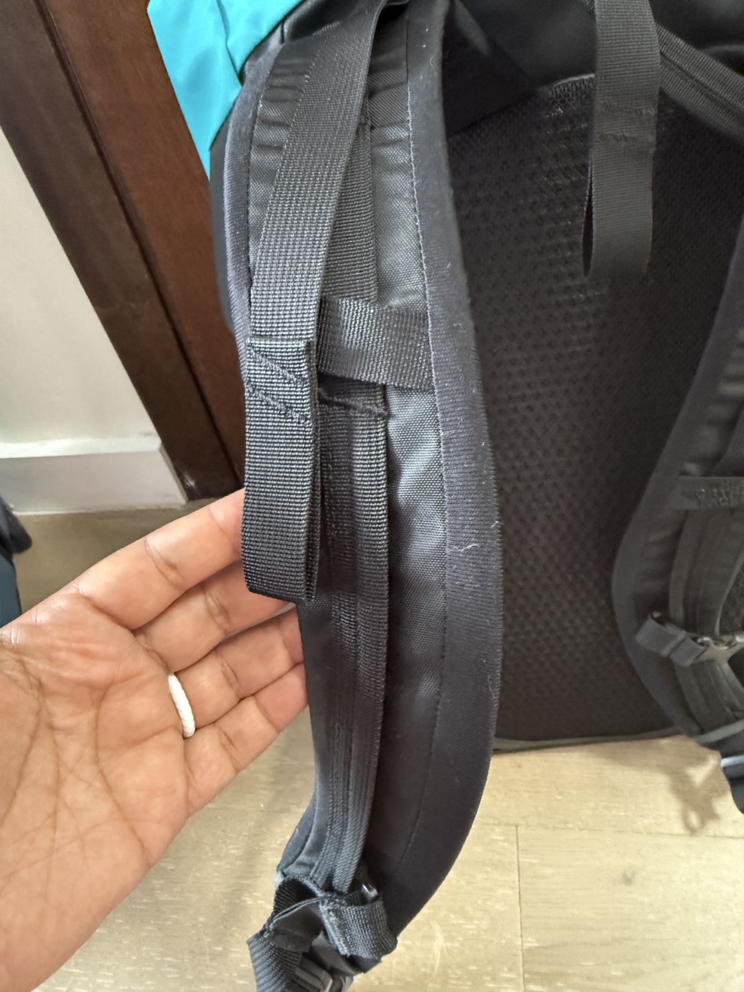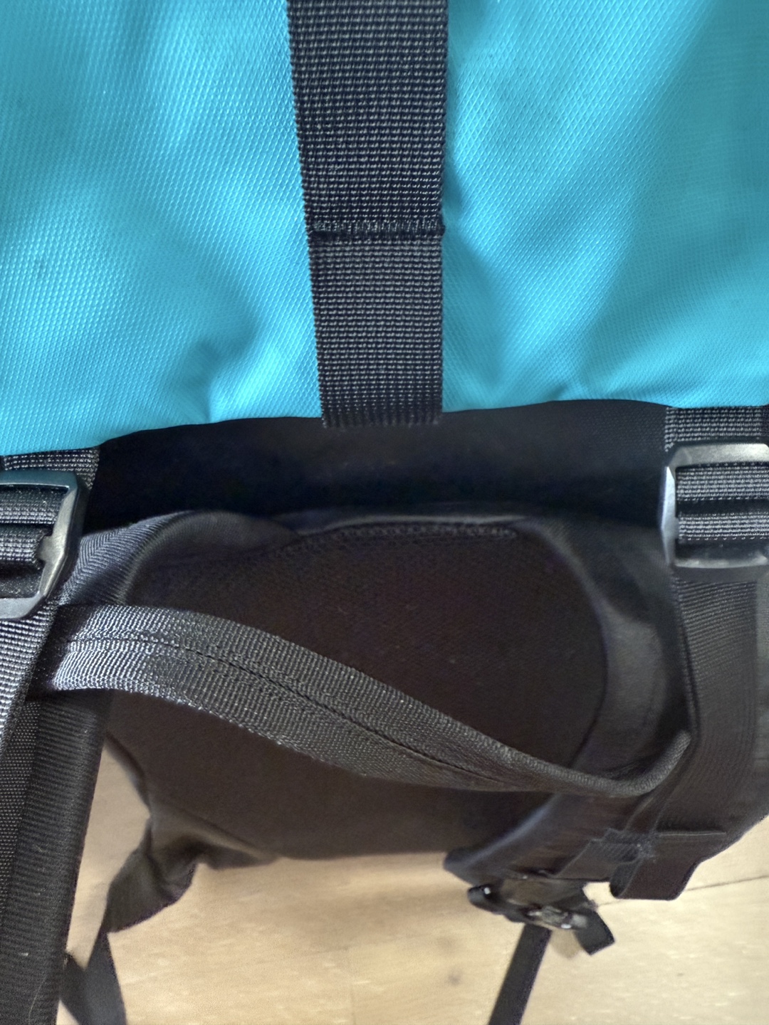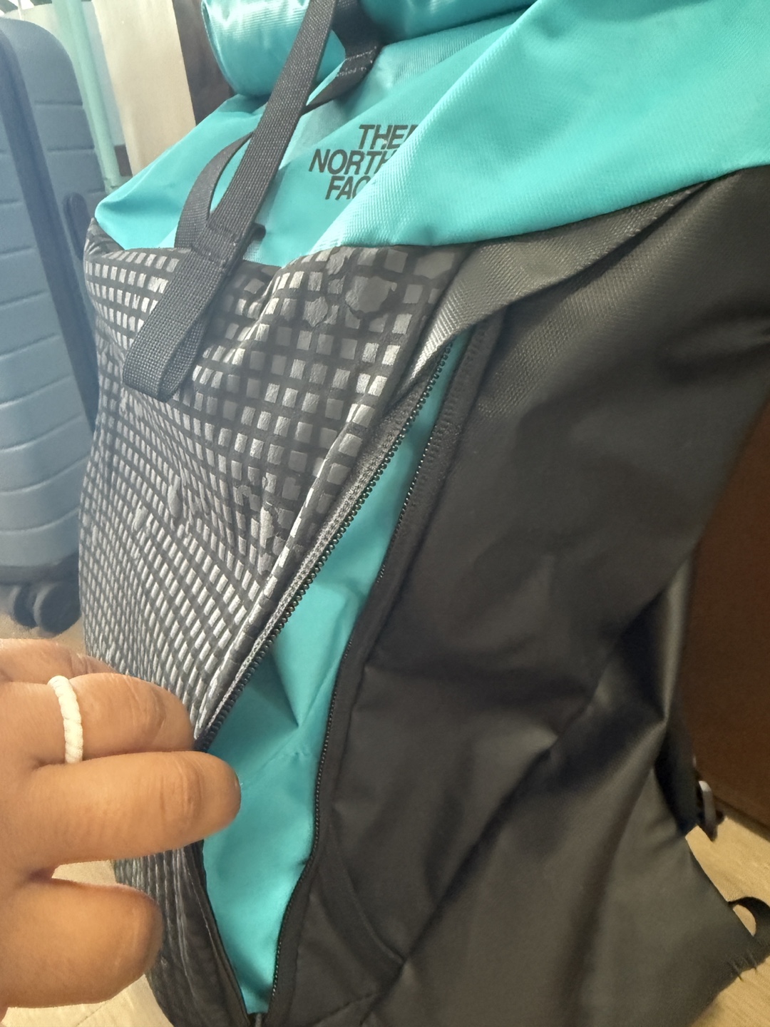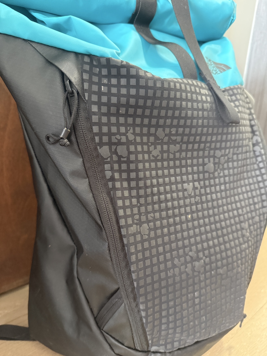 Selling a The North Face backpack in good condition. It features a roll-top closure and a stylish black and gray patterned design on the front. Perfect for everyday use or outdoor adventures!