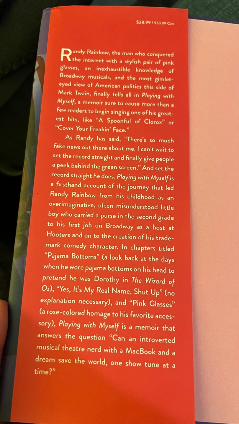 Description: An intimate and light-hearted memoir by viral sensation and three-time Emmy-nominated musical comedianRandy Rainbow that takes readers through his life—the highs, the lows, the lipstick, the pink glasses, and the show tunes.