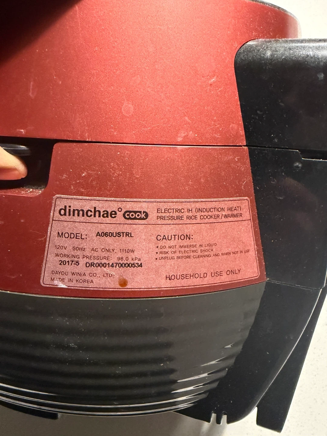 Selling a Dimchae Cook Electric IH (Induction Heat) Pressure Rice Cooker/Warmer. Model number A060USTR. It's made in Korea and is for household use only