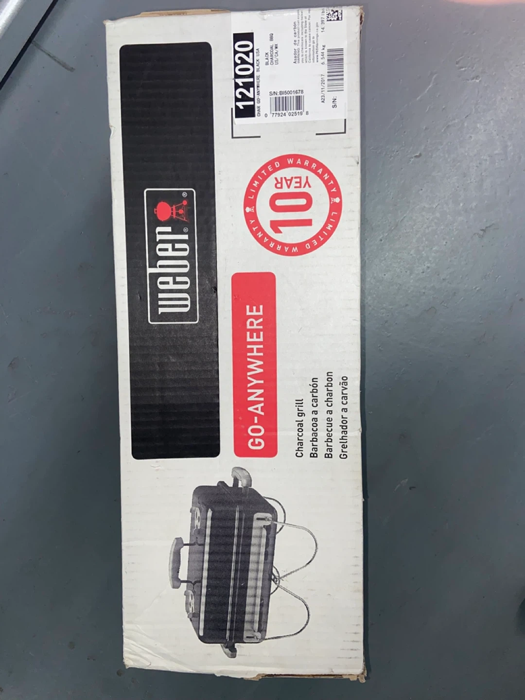 Selling a Weber Go-Anywhere charcoal grill in black! It's a portable and convenient option for grilling on the go. The box is included, so you'll have everything you need to get started