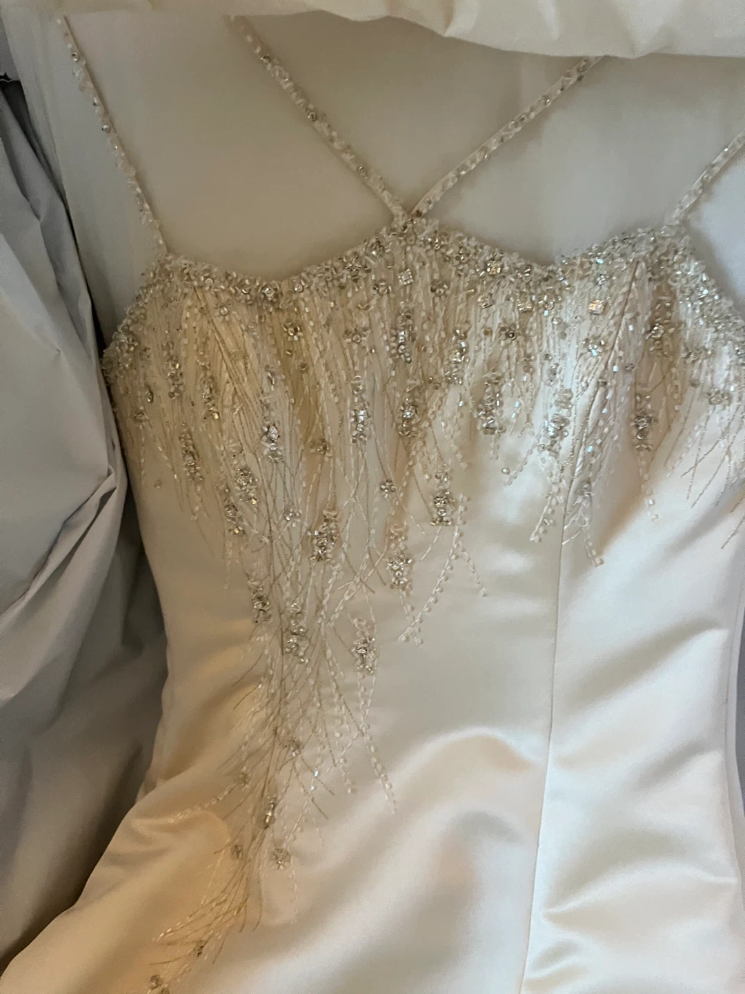 10Beautiful ivory wedding dress with intricate detailing. It's in great condition and ready for its next special day! Please let me know if you have any questions or would like to see more photos
