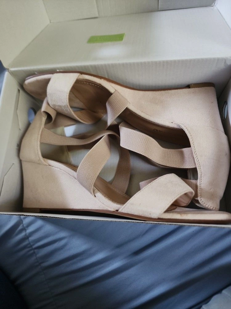 Heel Height: Mid Size: 9.5 Color: Beige Style: Strappy Brand: Dream Pairs