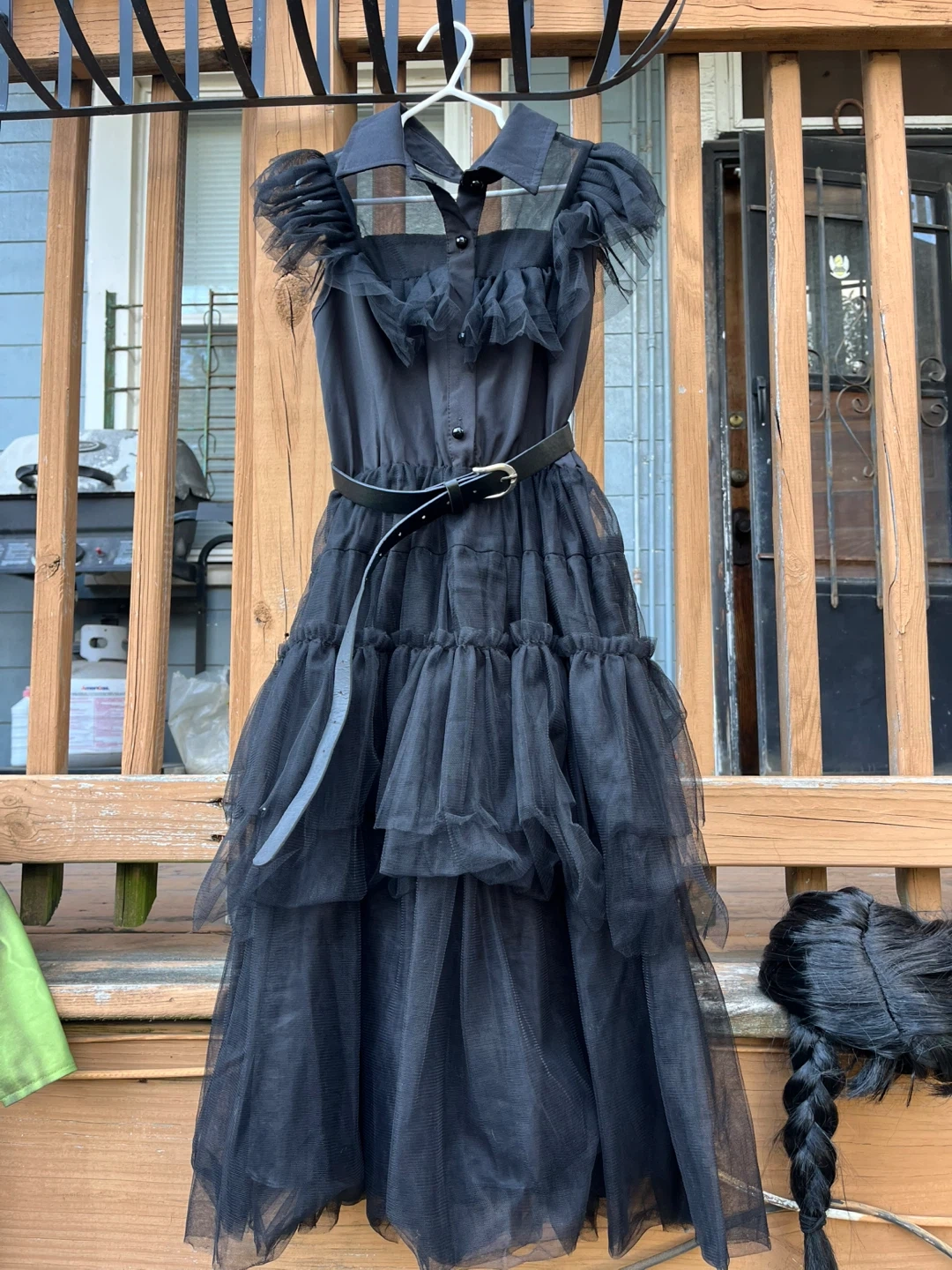 Selling a gently used Wednesday Addams costume! Includes the black dress with layered tulle and a matching black belt. Also comes with a braided wig to complete the look. Perfect for Halloween or cosplay!