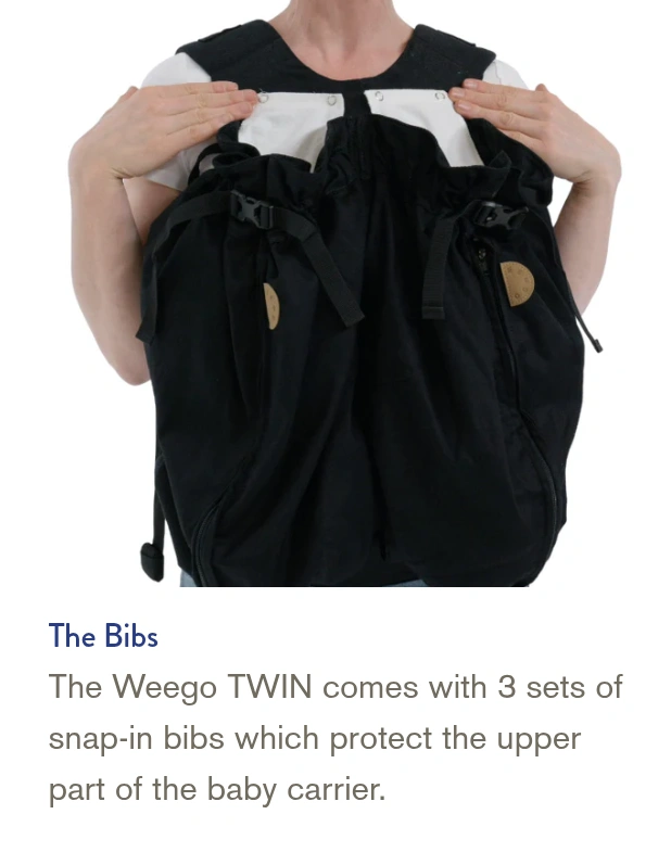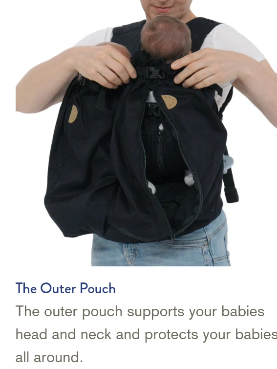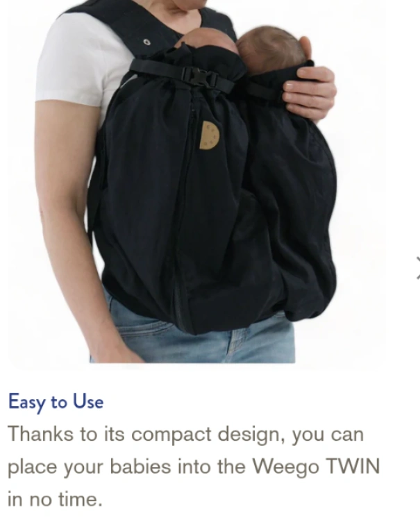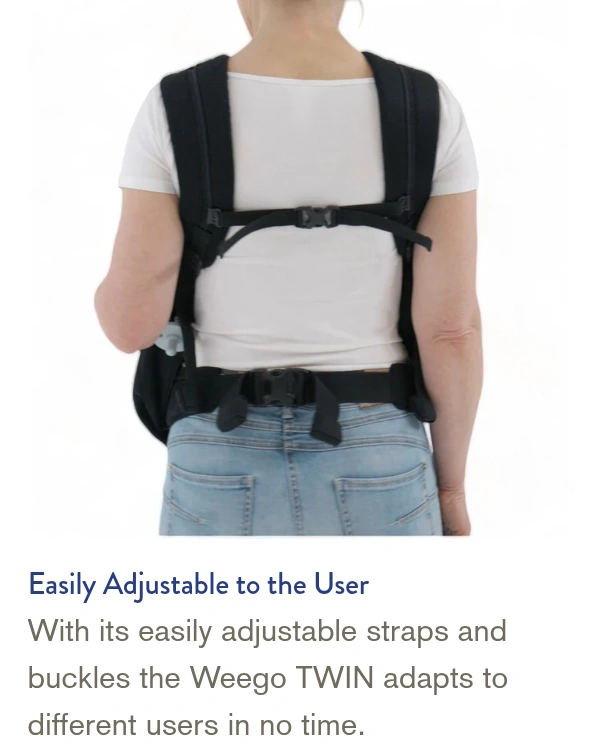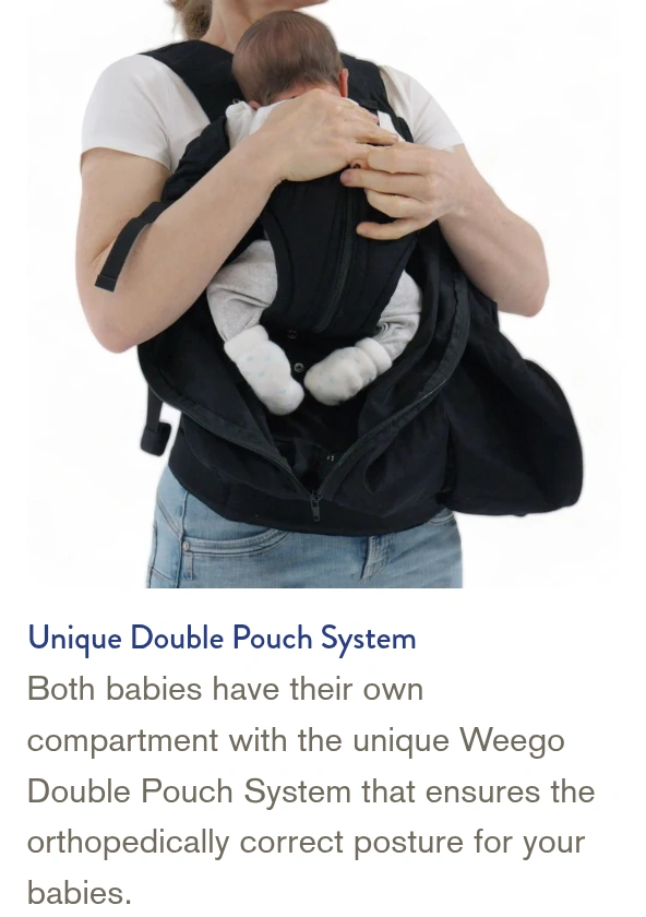 Baby carrier for twins and Preemies. Black fabric. Adjustable straps and buckles. Compact design. Easy to use. *Look at the Photos on the listing and read everything about the WEEGO Twin /Preemie Baby Carrier*