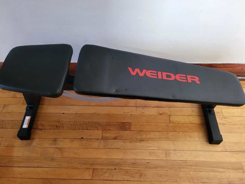 Selling a Weider adjustable weight bench. It's in great shape and ready for your home gym! The bench is black with the Weider logo in red.