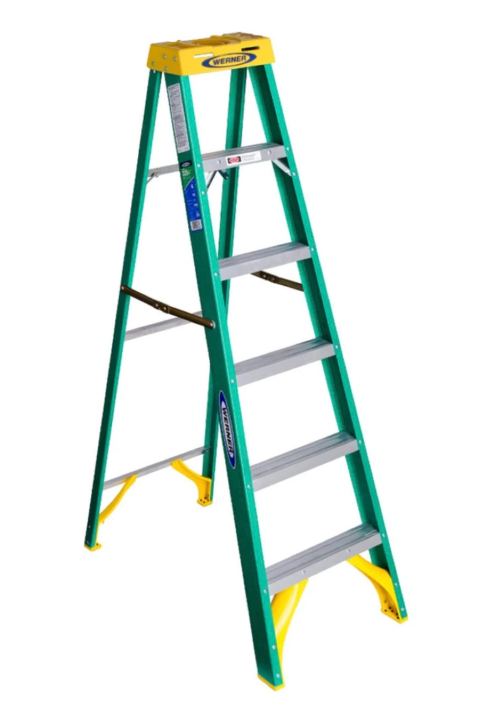 10Selling a Werner 6 ft fiberglass step ladder. It's used but in great condition ready to help with your next project! The ladder is green with yellow accents.