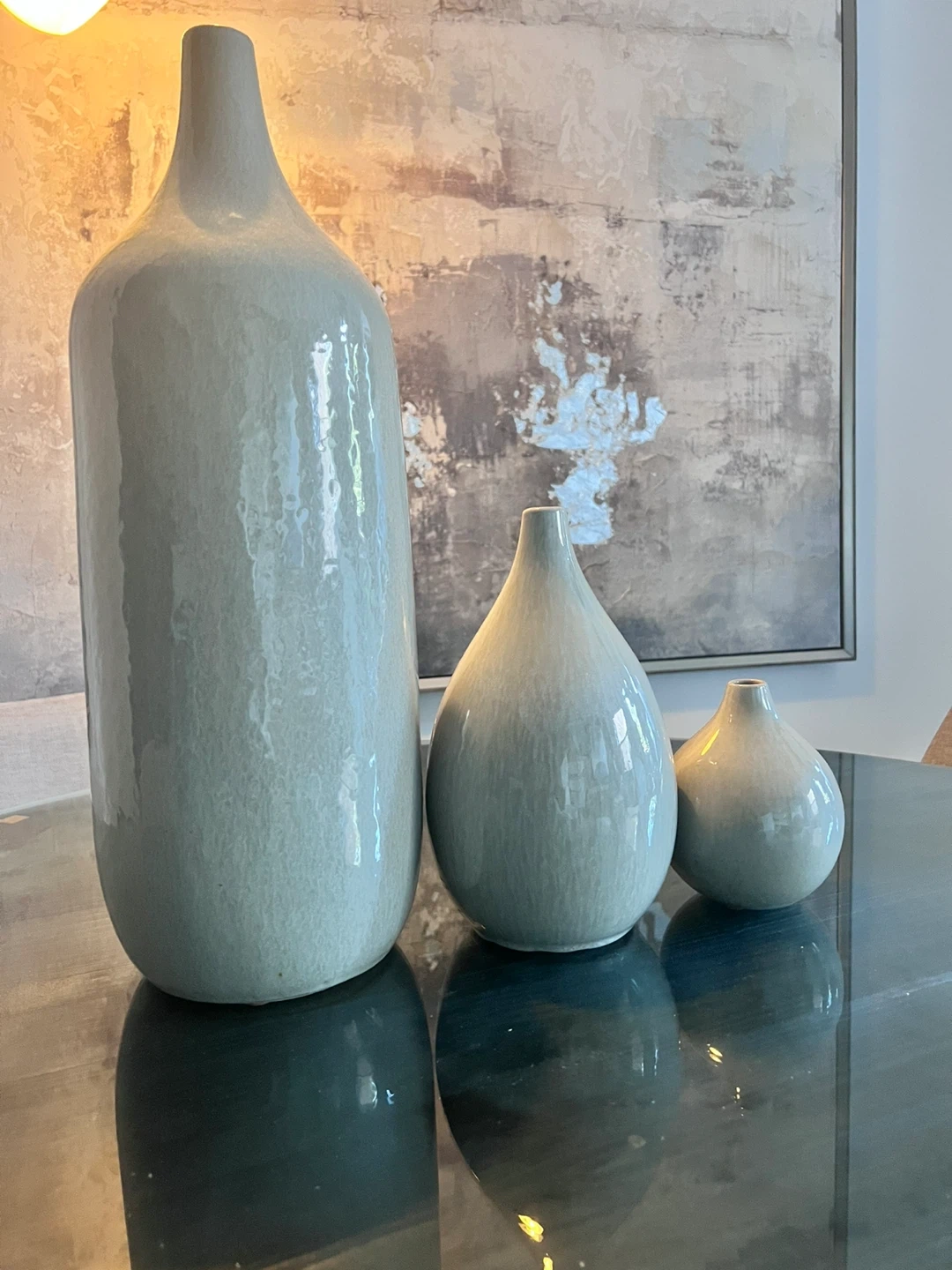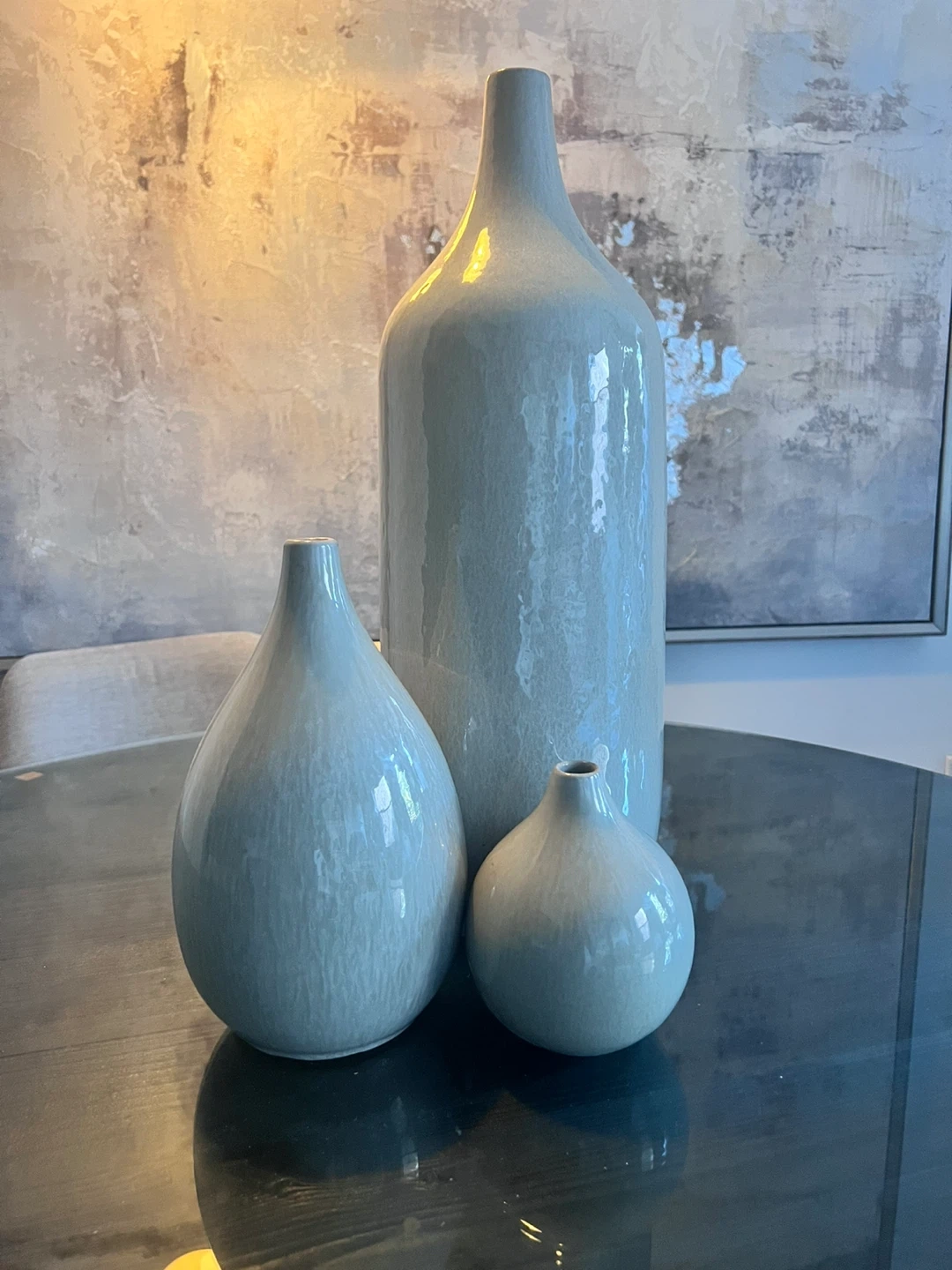 Beautiful set of 3 modern ceramic vases from West Elm. Glossy gray finish with clean, minimalist design. Perfect for home décor (ie. dining table, console, bookshelf).