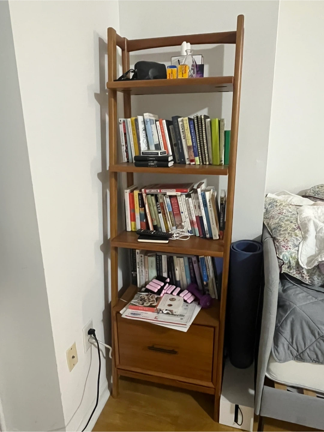 West elm mid century modern bookshelf bought less than 6 months ago - selling bc international move Please message for offers or more details! Original product link: https://www.westelm.com/products/mid-century-bookshelf-narrow-h1058/?pkey=sWE&sb=WE