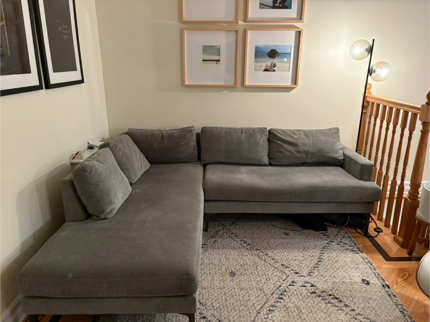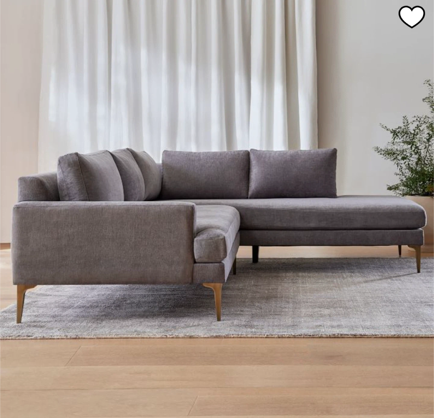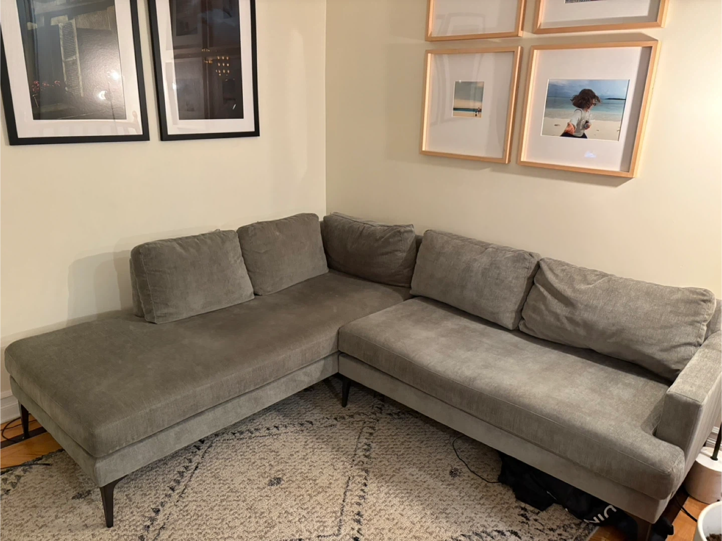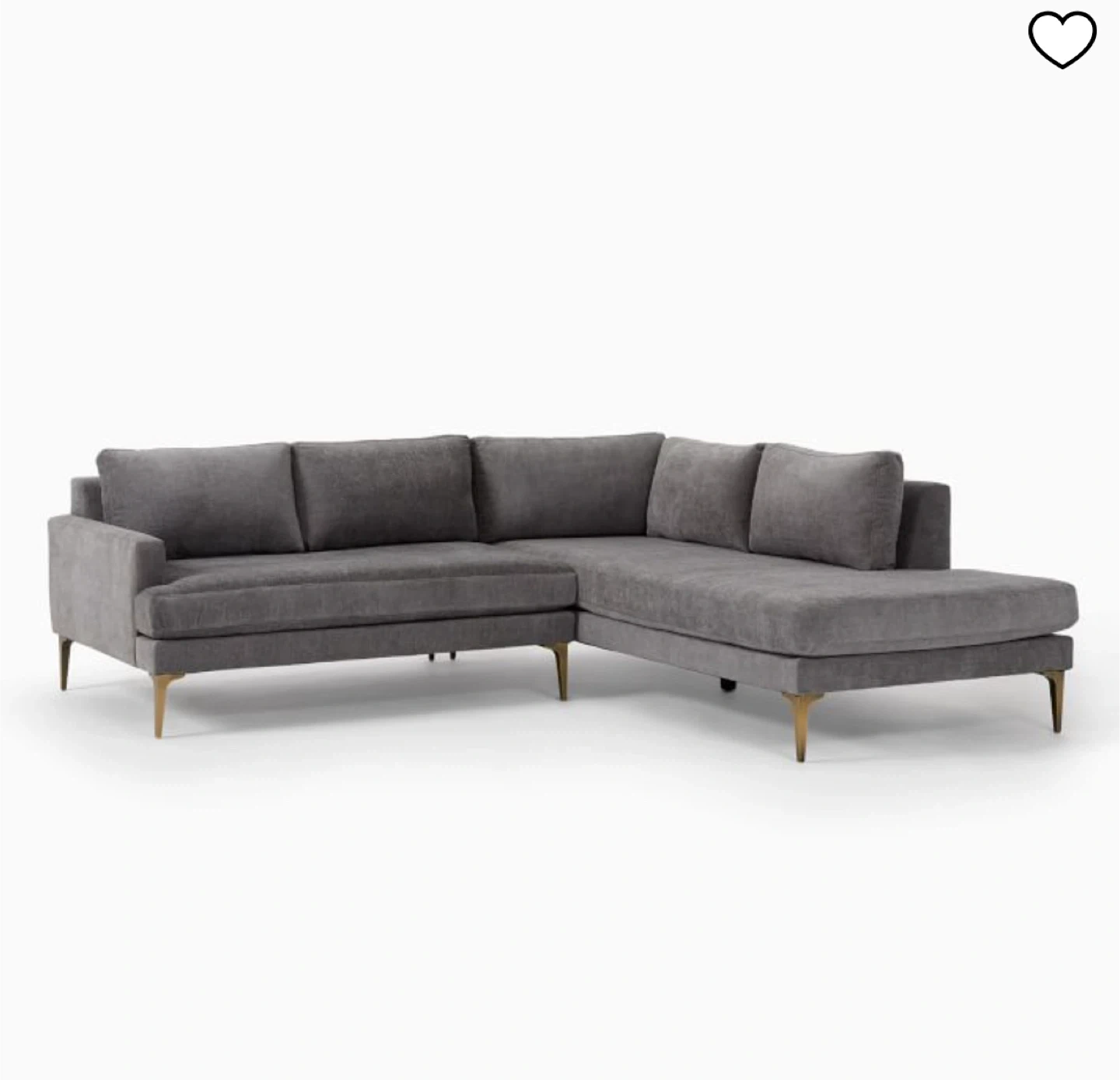 Selling a modern gray sectional sofa. It's in great condition and would be a stylish addition to any living room. The sectional design offers plenty of seating space and a comfortable lounging experience. Original listing: https://www.westelm.com/products/andes-terminal-chaise-sectional-h2298/?pkey=sWE&sb=WE