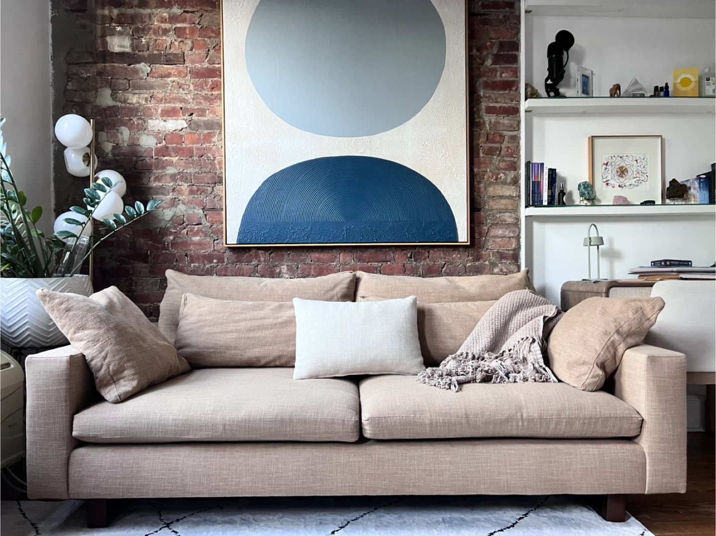 Comfortable and stylish West Elm sofa in a sand color. Features deep seats, clean lines, and loose back cushions for a relaxed yet polished look. Upholstered in a performance + yarn dyed linen weave that works well with any décor style. Condition: Excellent, gently used.