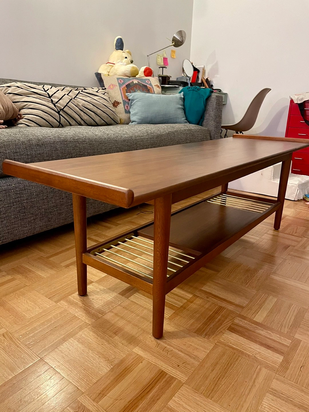 76Beautiful West Elm bench that I’ve used as a coffee table. In excellent condition, except for a couple tiny nicks that I’ve included a picture of. Really lovely, and I’ve loved the quality of it — sadly parting with it because I’m moving out of the country! This item seems to be discontinued at West Elm (included picture of SKU number) but here is the original link: https://www.westelm.com/m/products/1897029/ 54”L x 16.5”D x 17”H