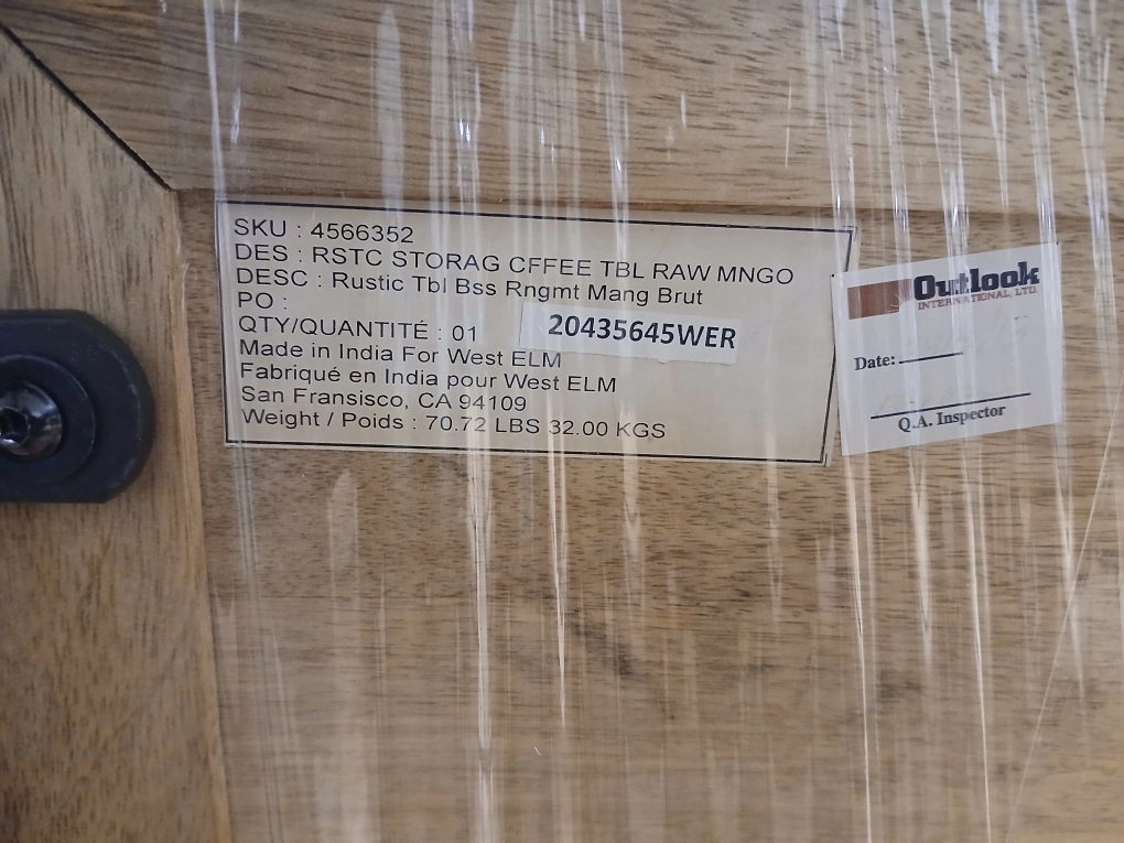 West Elm Rustic Storage Coffee Table - Raw Mango