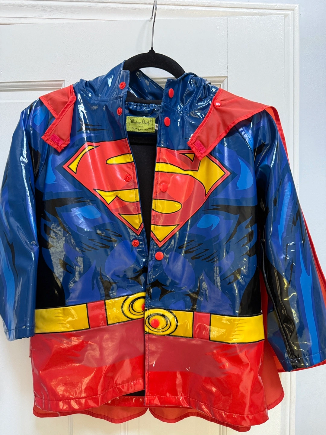 This is a Western Chief Kids raincoat featuring a Superman design! The size is 6/6X. It's in great shape and ready to keep your little one dry and stylish on rainy days