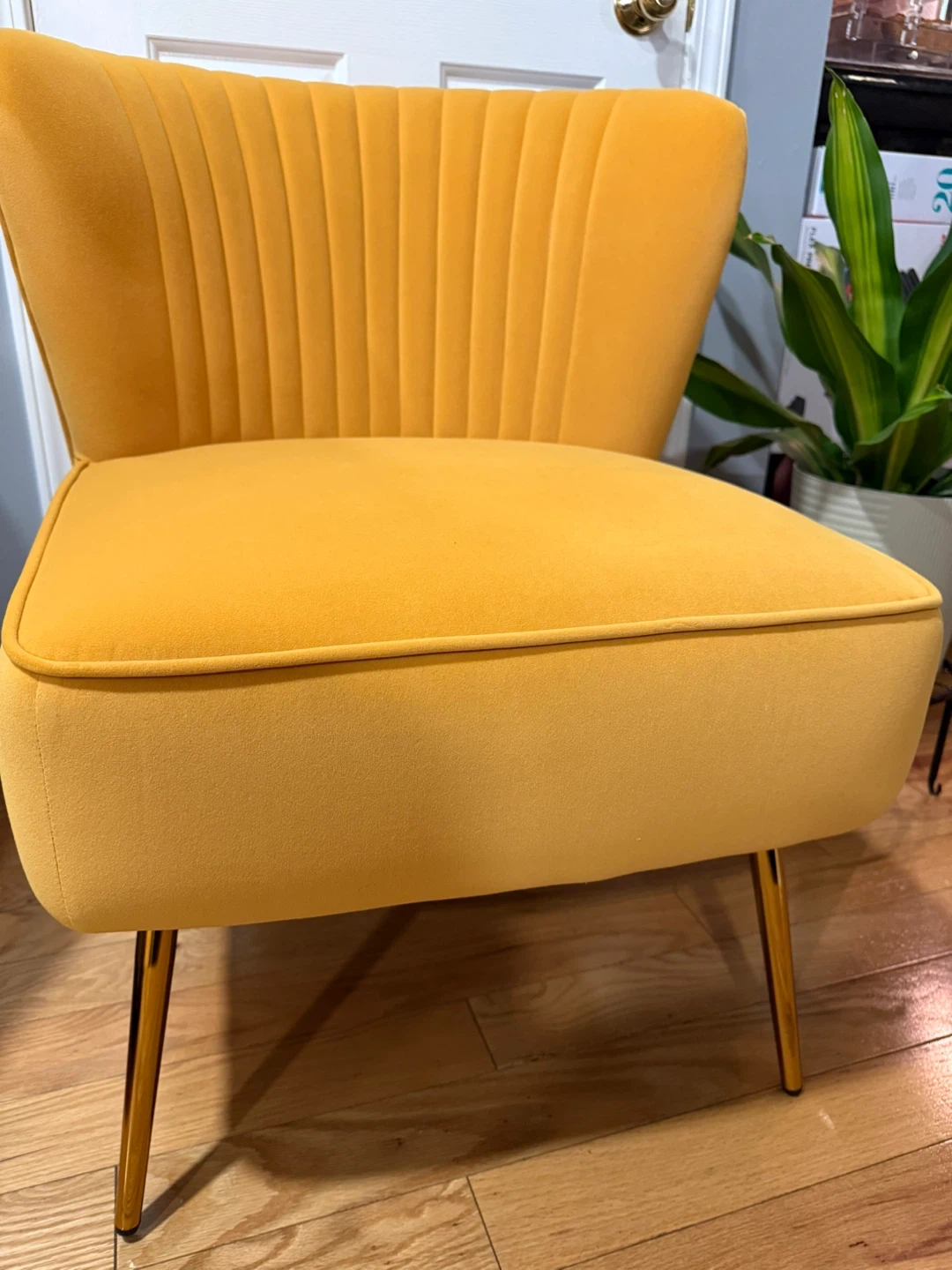 67Selling a WestinTrends mid-century accent chair in a beautiful mustard color. It features a stylish design with gold-colored legs. This chair would be a great addition to any living space! Originally bought for $195.99