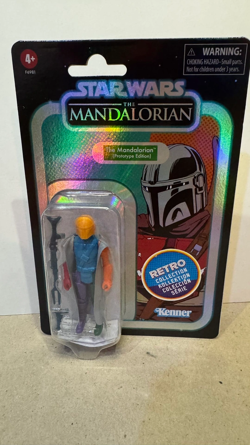 Star Wars Retro Collection the Mandalorian Prototype (yellow). Item may show imperfections. Brand new sealed, come from a smoke free and pet free home.