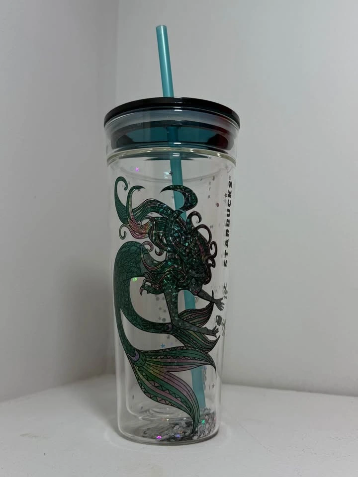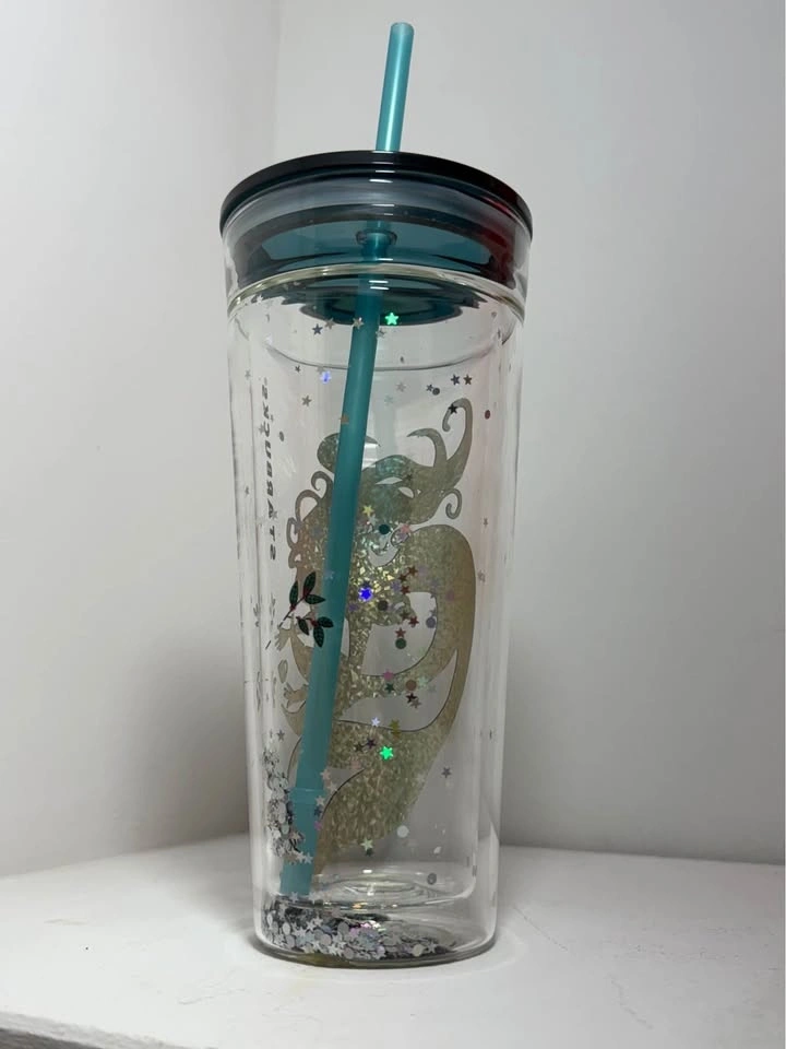 Starbucks 2020 China Anniversary/Holiday Siren Glitter Glass Tumbler.