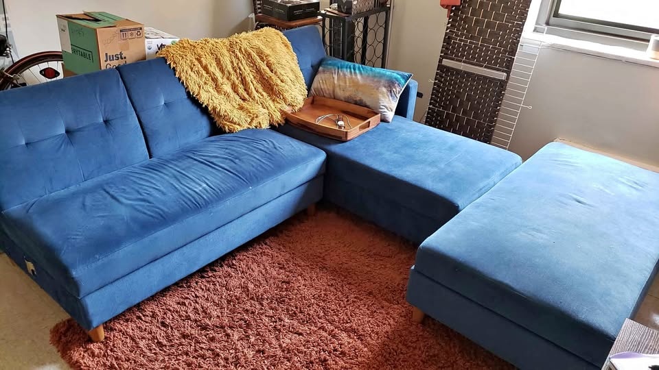 - Some wear on sofa feet from previous puppy