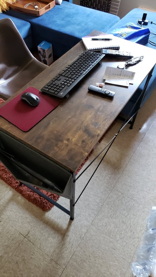 ✓ Brown Minimalist Work desk with utility pouch and Leather seat