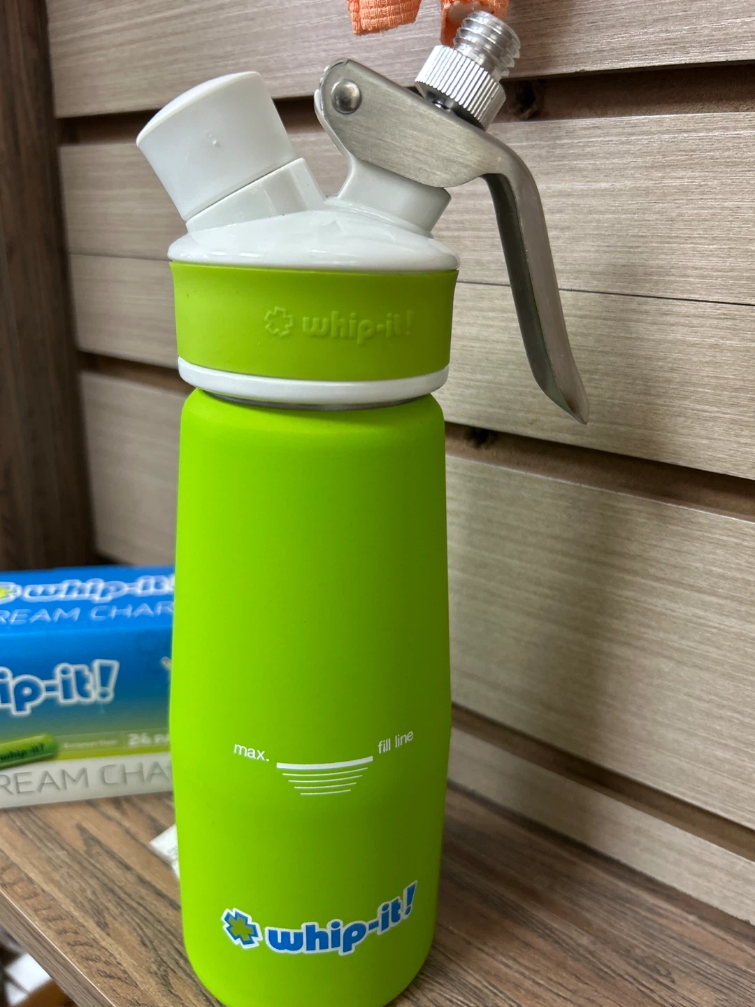 73Selling a Whip-It! cream charger dispenser. It's in great condition and ready to use for all your culinary creations! The bright green color adds a fun touch to any kitchen. It has a fill line indicator for easy use